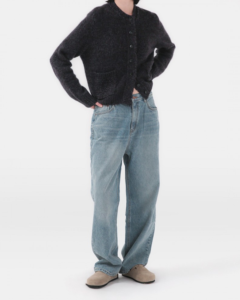 Cashmere 75%, Silk 25% Slightly elastic / No see-through / Thick No gloss / Soft to the touch / Moderate weight F: Total length 55, Shoulder 74 (Raglan), Chest 52, Waist 48, Sleeve 10 Model 169cm, wearing size 66 M