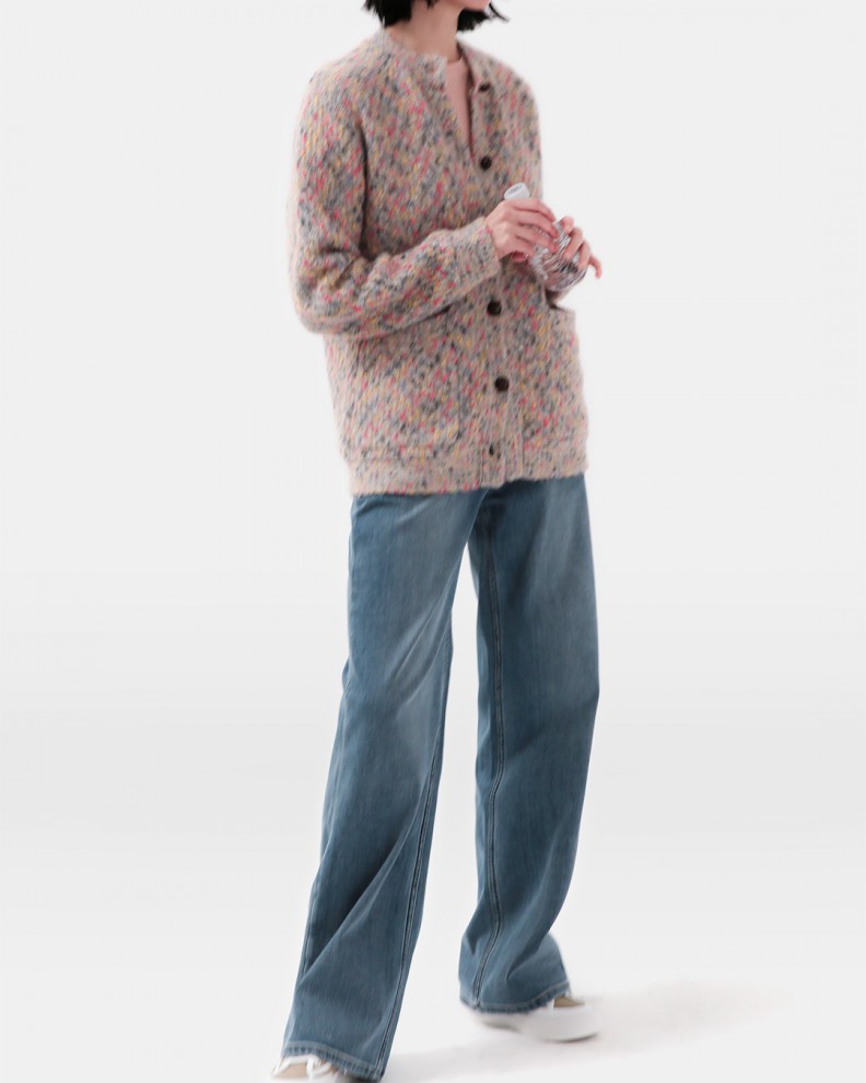 Cashmere 24%, Silk 15%, Alpaca 61% S(55-66): Total length 64, Shoulder 41, Chest 53, Hem 46, Sleeve length 63, Sleeve 10.5 M(66-77): Total length 65, Shoulder 43, Chest 55, Hem 48, Sleeve length 64, Sleeve 11.5 Model 168cm 55-66Size: Wearing S