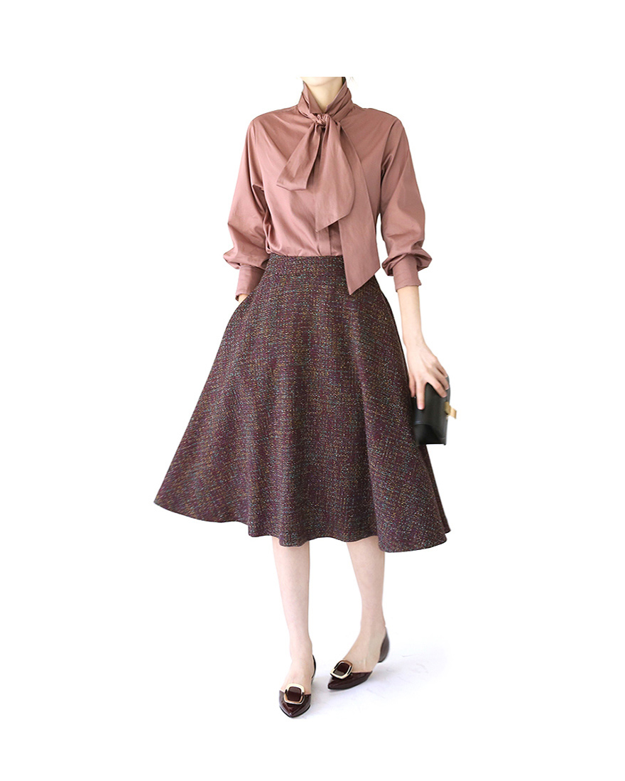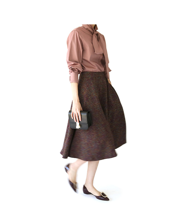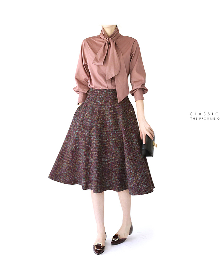 탄탄한 코튼 베이스가 몸에 달라붙지 않고 구조를 잡아 주어 깔끔한 실루엣을 유지하고, 타이는 분리해 미니멀하게도, 묶어 포멀하게도—하나로 두 가지 무드를 완성합니다. 핑크도 보라도 아닌 오묘한 모브 톤이 얼굴을 환하게 밝혀 주어, “소장하길 잘했다” 싶은 순간이 많아질 거예요. 셔츠의 힘과 블라우스의 우아함을 동시에 누리는, 캡슐 옷장 필수 아이템입니다 😊