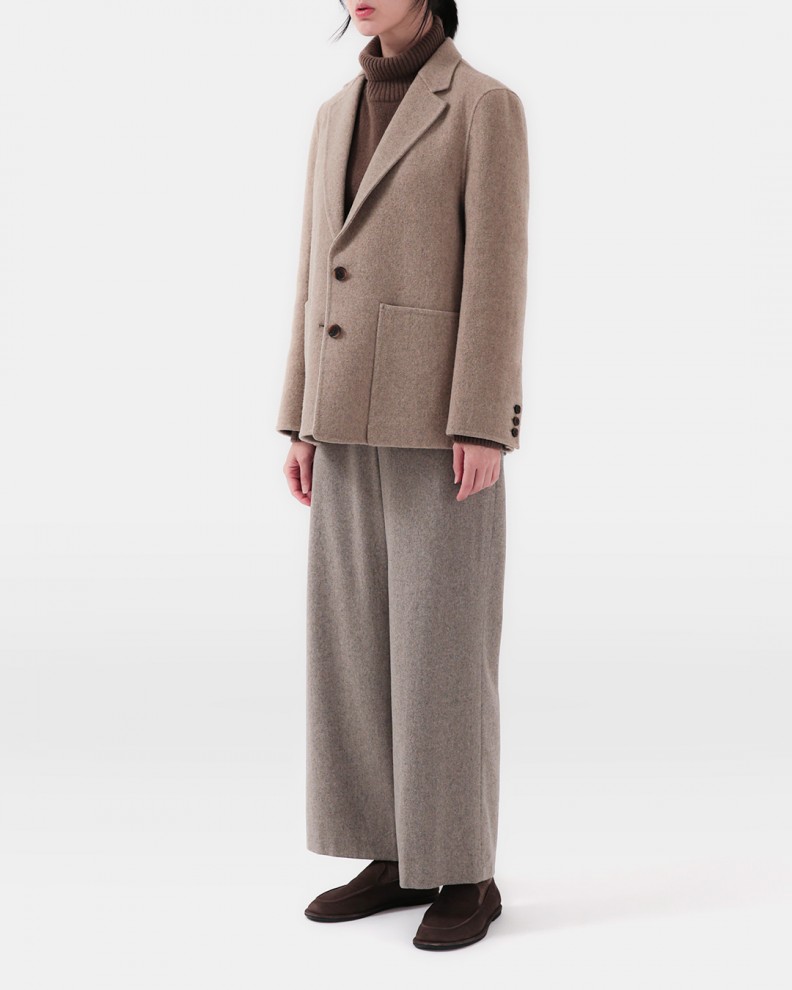 Wool 40%, raccoon 15%, nylon 30%, polyester 15% Good elasticity / No see-through / Medium-thickness No gloss / Soft to the touch / Light in weight FREE: Total length 57, Shoulder (raglan) 73, Chest 49.5, Hem 42, Sleeve 10 Model 169cm, size 55-66: wearing FREE
