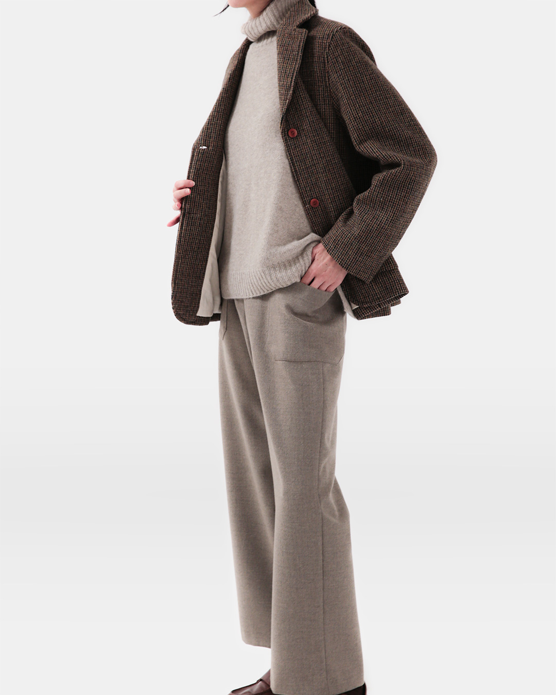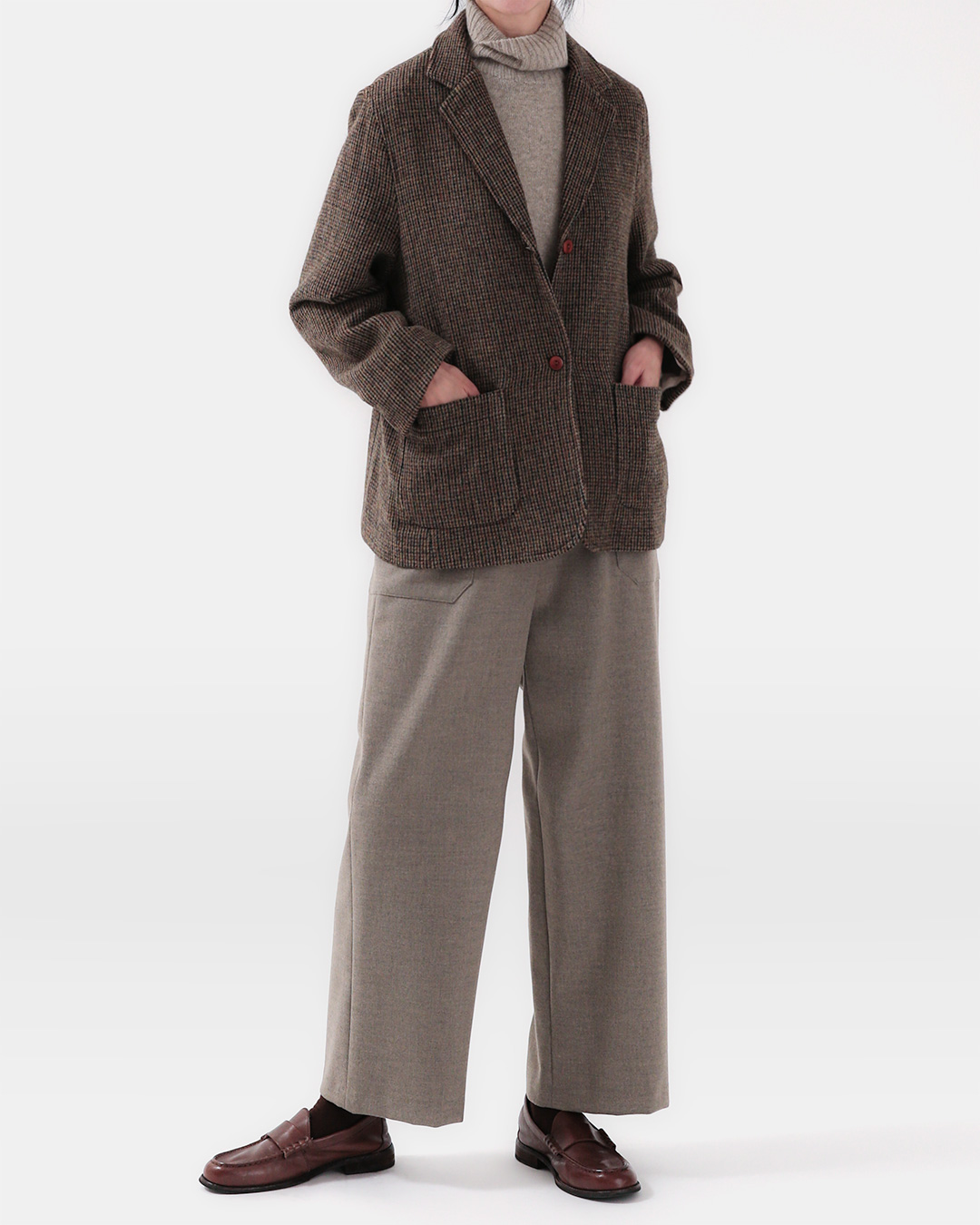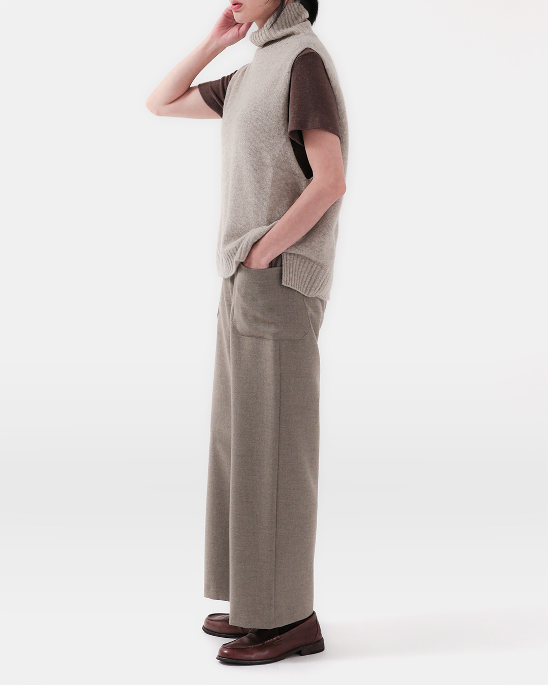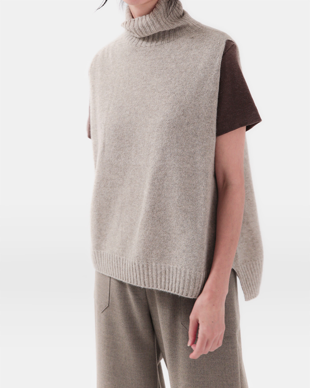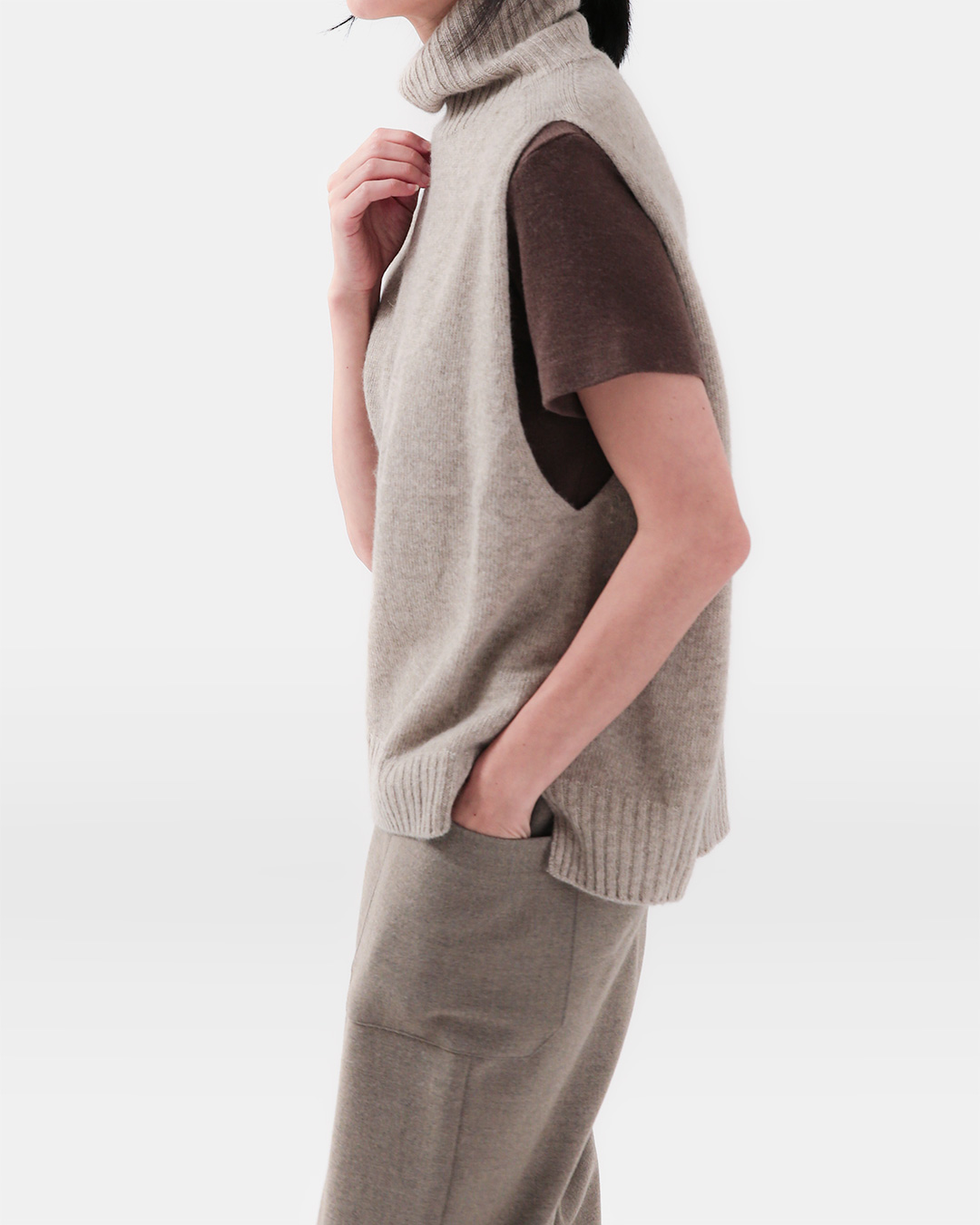 50% wool, 30% nylon, 20% fox FREE: Total length 62, shoulder 56.5, hem 59, armhole 32 Model 169cm, size 55-66: wearing FREE