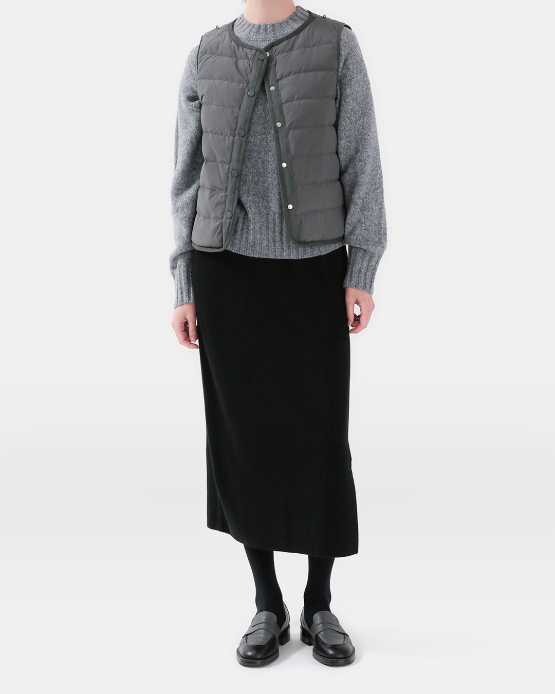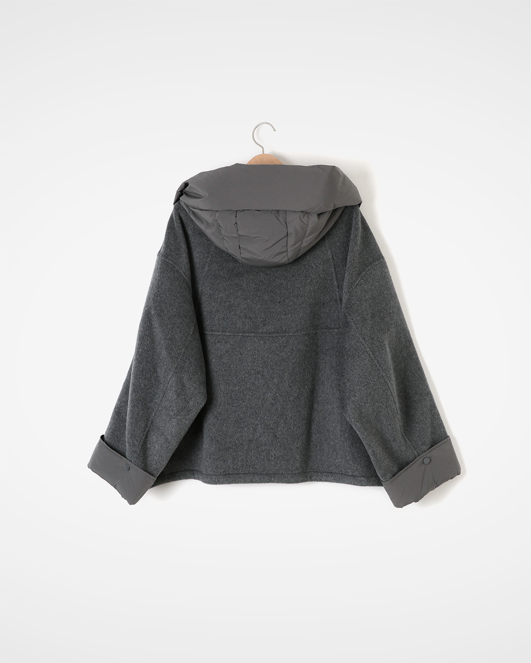 Wool 91% Alpaca 9% FREE(S): Total length 65, Shoulder 54, Chest 71, Hem 66.5, Sleeve length 47, Sleeve 18 Model 169cm, size 55-66: wearing F