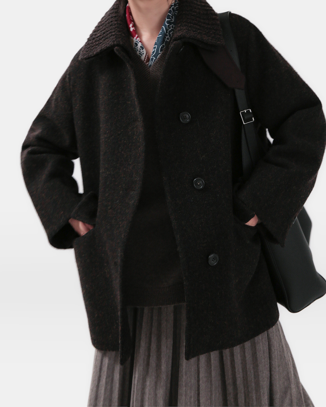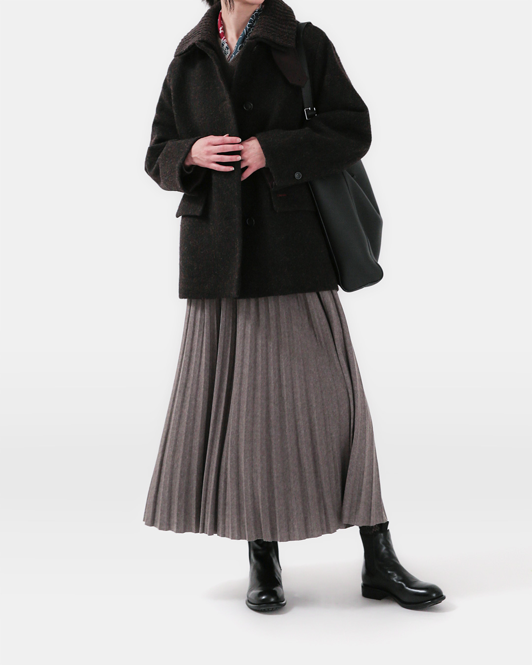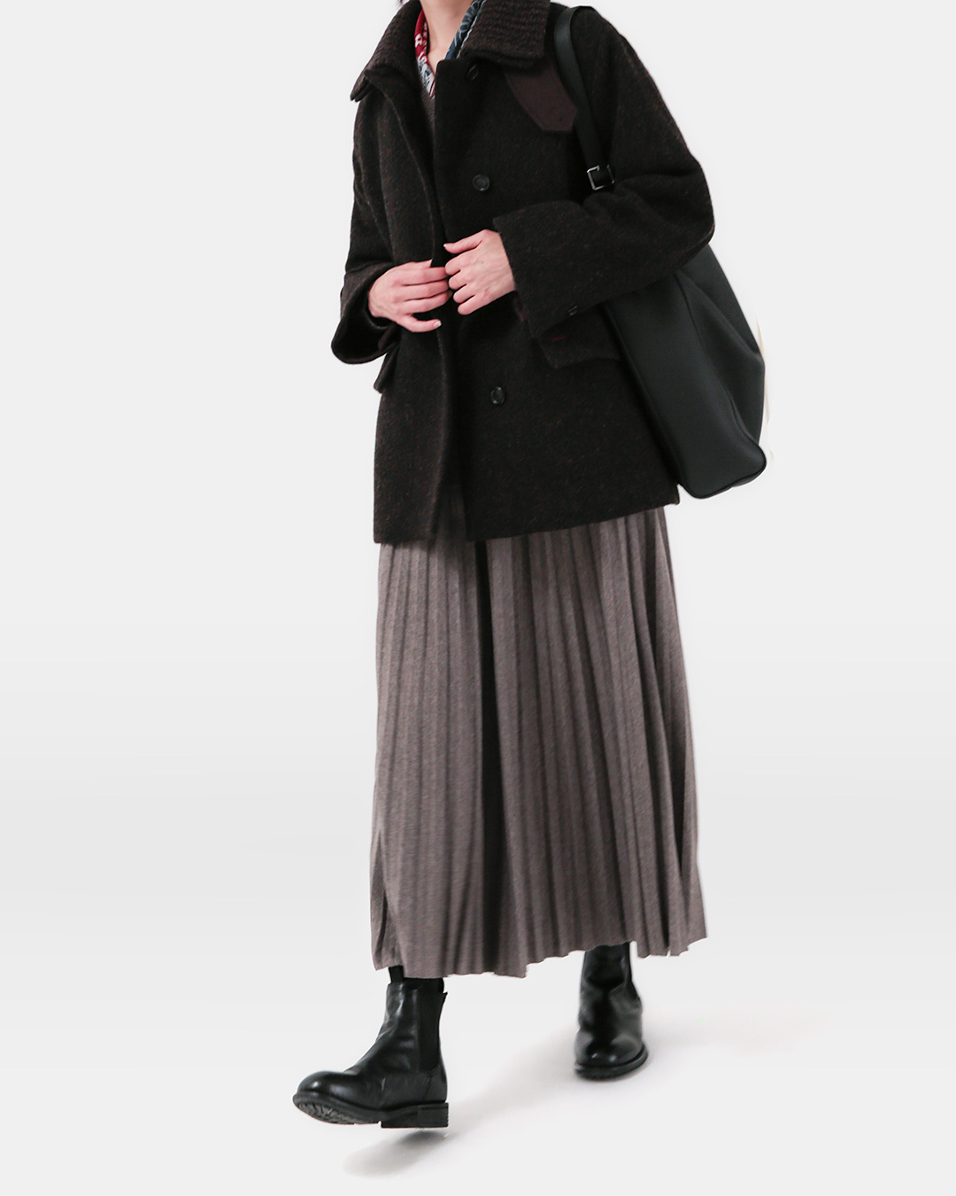 • 버건디·네이비·크림의 안정된 컬러 조합으로 부담 없이 스타일링 가능