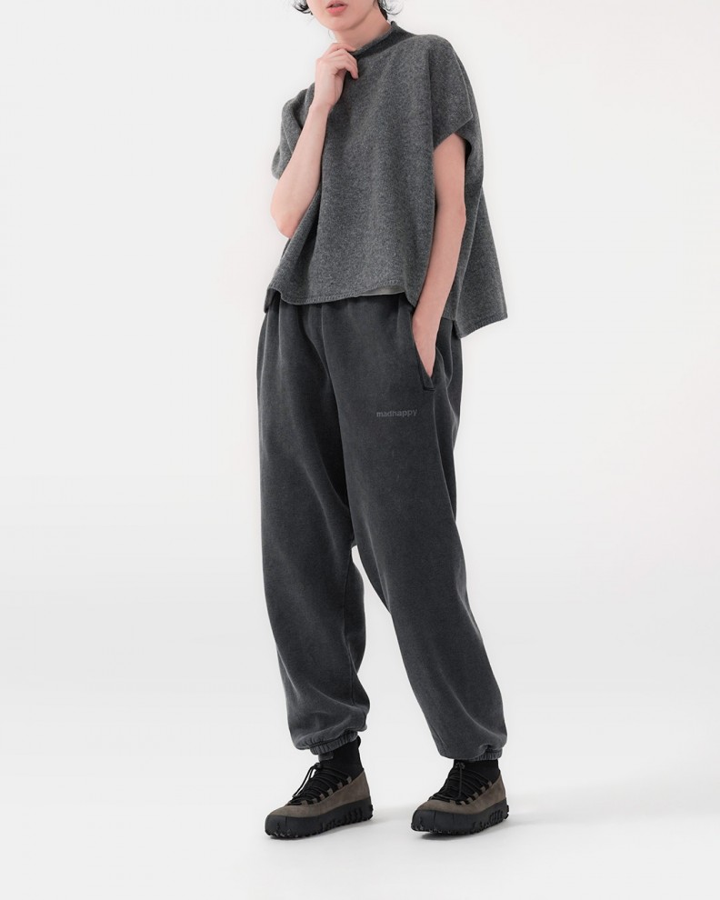 90% wool, 10% cashmere Slightly elastic / No see-through / Thick Soft to the touch / No gloss / Light in weight F: Total length 60.5, shoulder 69, chest 72, hem 73, armhole 20 Model 168cm tall, size 55-66, wearing size F