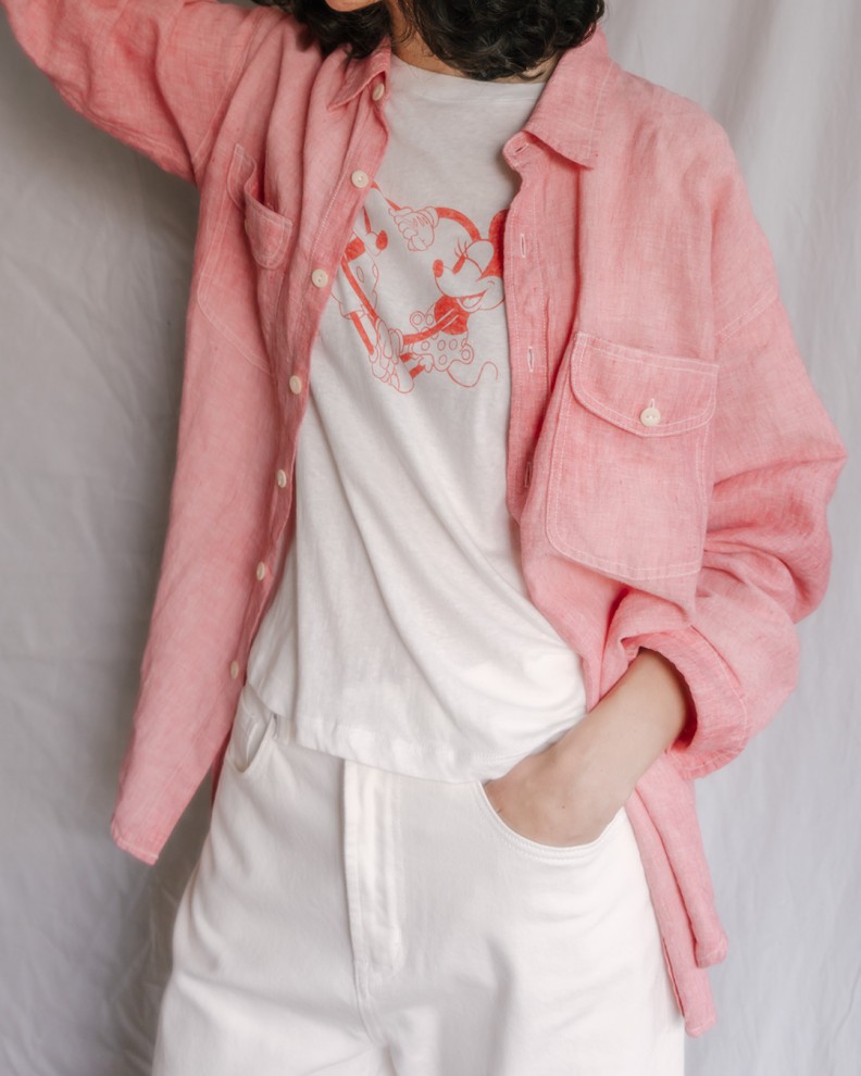 Viscote 60% Polyester 25% Linen 15% Good stretch / Slightly sheer / Lightweight Thickness Normal / Texture Soft / Gloss None FREE(55-77): Total Length 56 Shoulder 40 Chest 50 Hem 42.5 Armhole 20 Model 168cm, wearing Size F (55-66)