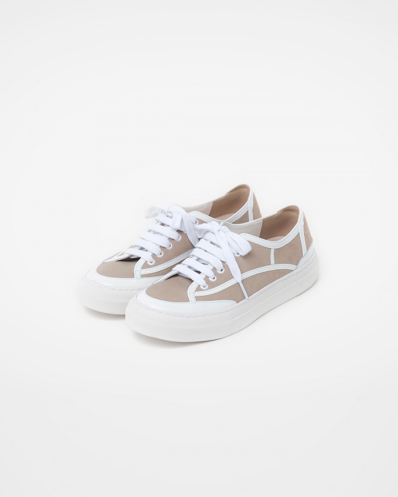 • 따뜻한 감촉과 유연함이 느껴지는 울 혼방 니트 • 상단은 아이보리, 하단은 그린 컬러에 도트 패턴이 믹스된 배색 디자인 • 브이넥 라인과 암홀, 밑단은 짜임 있는 립 디테일로 마무리 • 왼쪽 가슴에 다채로운 컬러의 플라워 자수 장식 • 베이직 셔츠, 터틀넥, 롱 슬리브 티셔츠 등 다양한 이너와 레이어드 가능