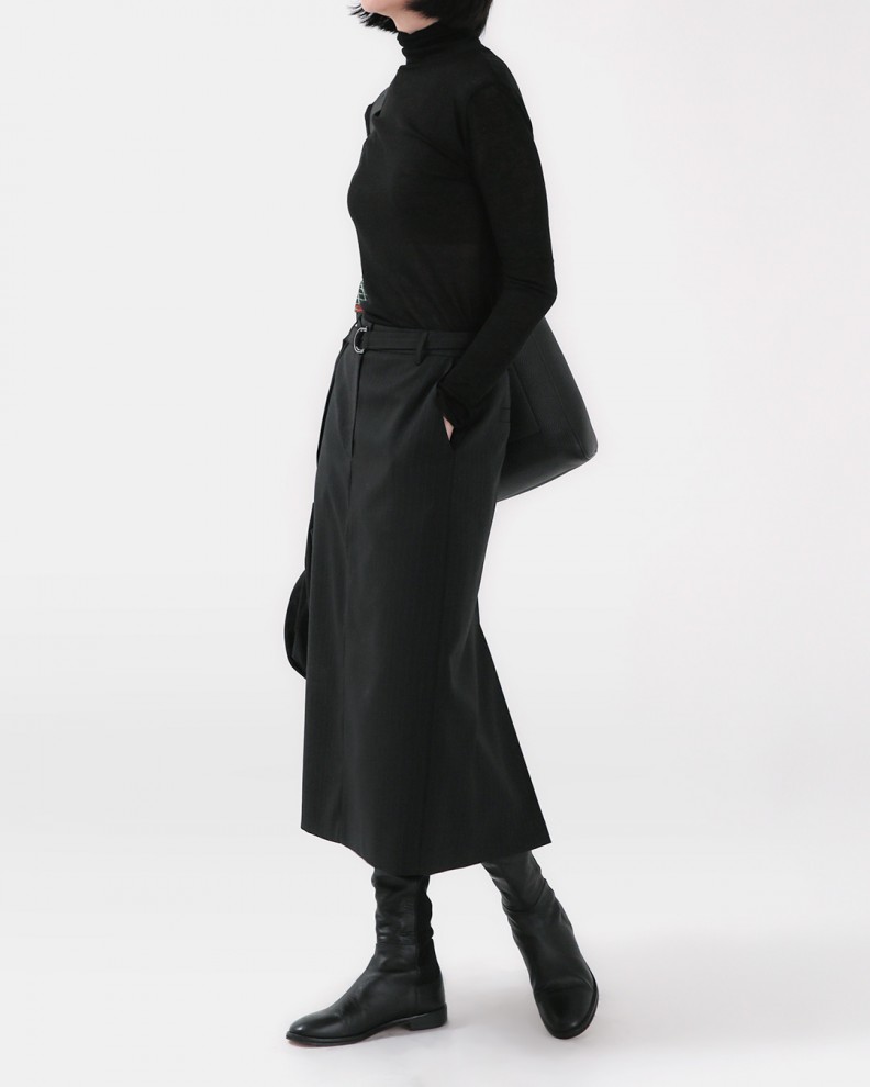 70% Tencel, 30% wool Good elasticity / See-through / Thin Soft to the touch / Light in weight Tight fit F(55-77): Total length 62, Shoulder 40, Chest 38, Hem 40, Sleeve length 65, Sleeve 10 Model 163cm, size 55: wearing F