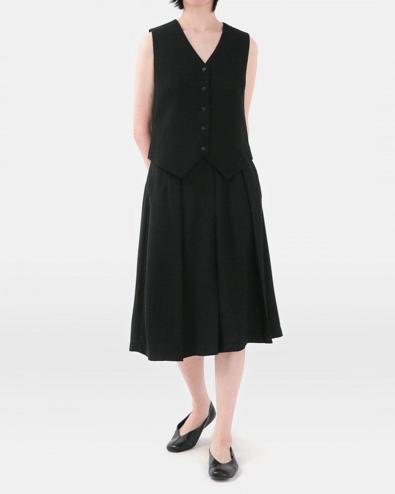 71% acetate, 29% polyester Lining: 96% polyester, 3% elastane No elasticity / No see-through / Moderate thickness No gloss / Soft to the touch / Moderate weight FREE(L): Total length 56, shoulder 34, chest 44, hem 46, armhole 22 Model 169cm, size 55-66: wearing F