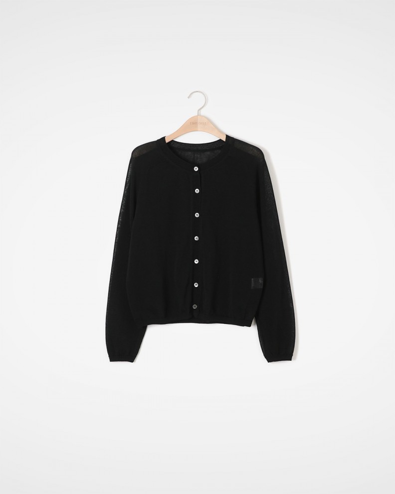 100% polyester No elasticity / Slightly see-through / Thin / No gloss Soft to the touch / Light in weight / No lining F: Total length 66, Shoulder 34, Chest 50, Hem 59, Armhole 19 Model 165cm, size 55: wearing F