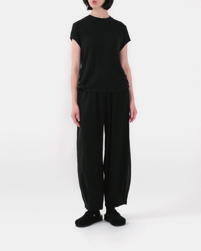 10% wool, 86% Tencel, 4% polyurethane Good elasticity / No see-through / Thin No gloss / Soft to the touch / Light in weight M(55-66): Total length 58, Shoulder 35, Chest 47, Hem 49, Sleeve length 10, Sleeve 15 L(66-77): Total length 59, Shoulder 37, Chest 49, Hem 51, Sleeve length 11, Sleeve 16 Model 169cm, size 55-66: wearing L