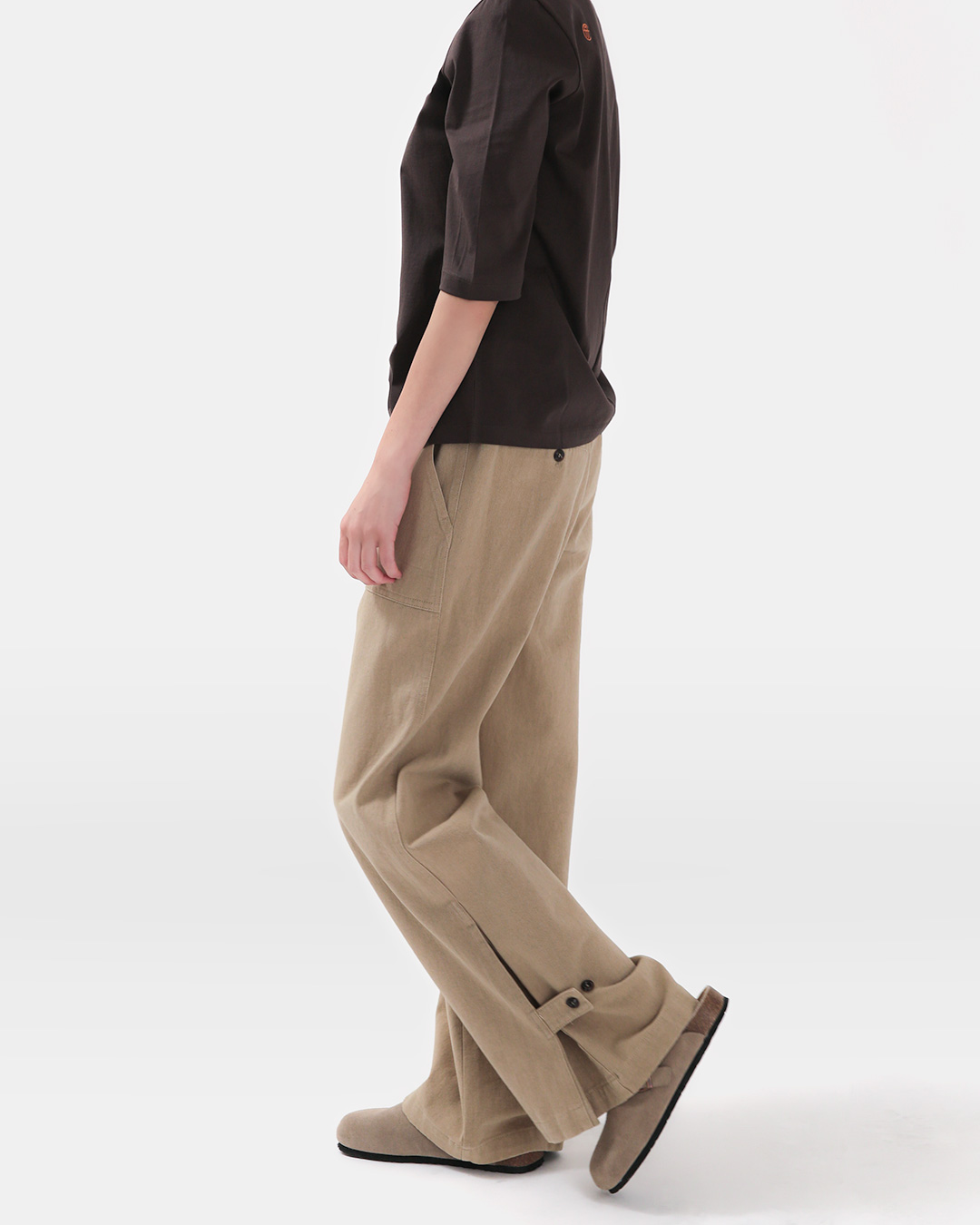 - 뒷 허리 버튼 디테일로 포인트와 실용성을 동시에