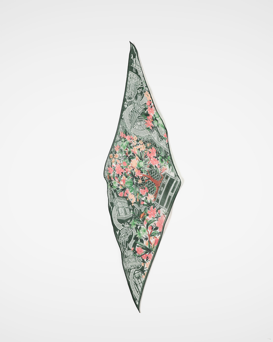- 그린 바탕 위 화사한 플로럴 패턴으로 룩에 생기 부여