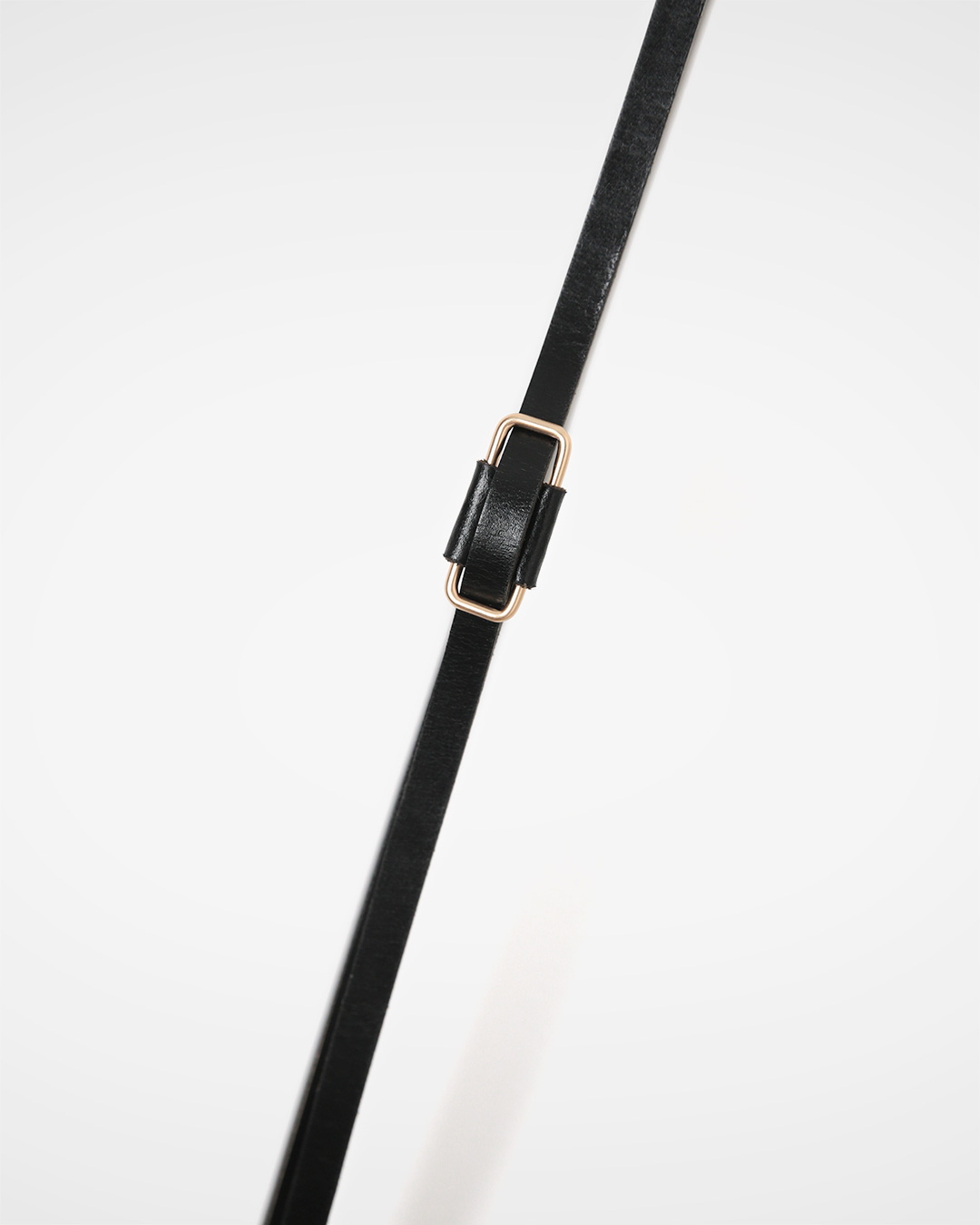 룩 전체를 무겁게 하지 않으면서도 은근하게 힘을 더해주는 아이템이에요. 허리선에 살짝 더해지는 얇은 스트랩 하나만으로 실루엣이 정제되어 보이고, 특별히 꾸미지 않아도 완성도가 다른 스타일링을 완성할 수 있습니다