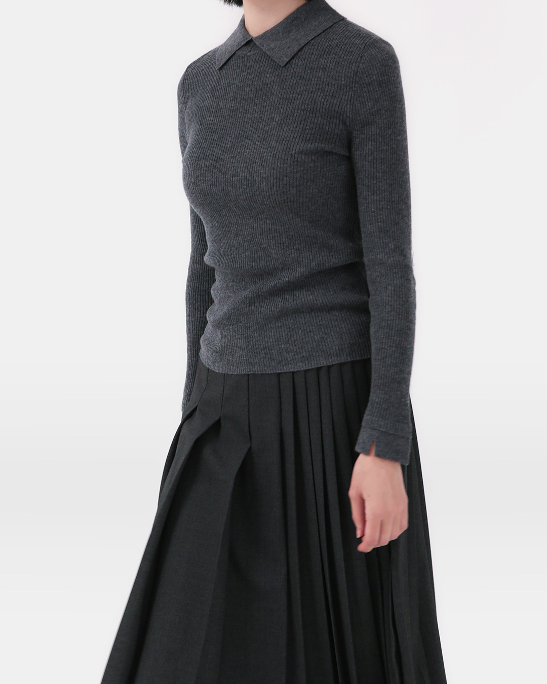 convertible collar pure wool rib knit
