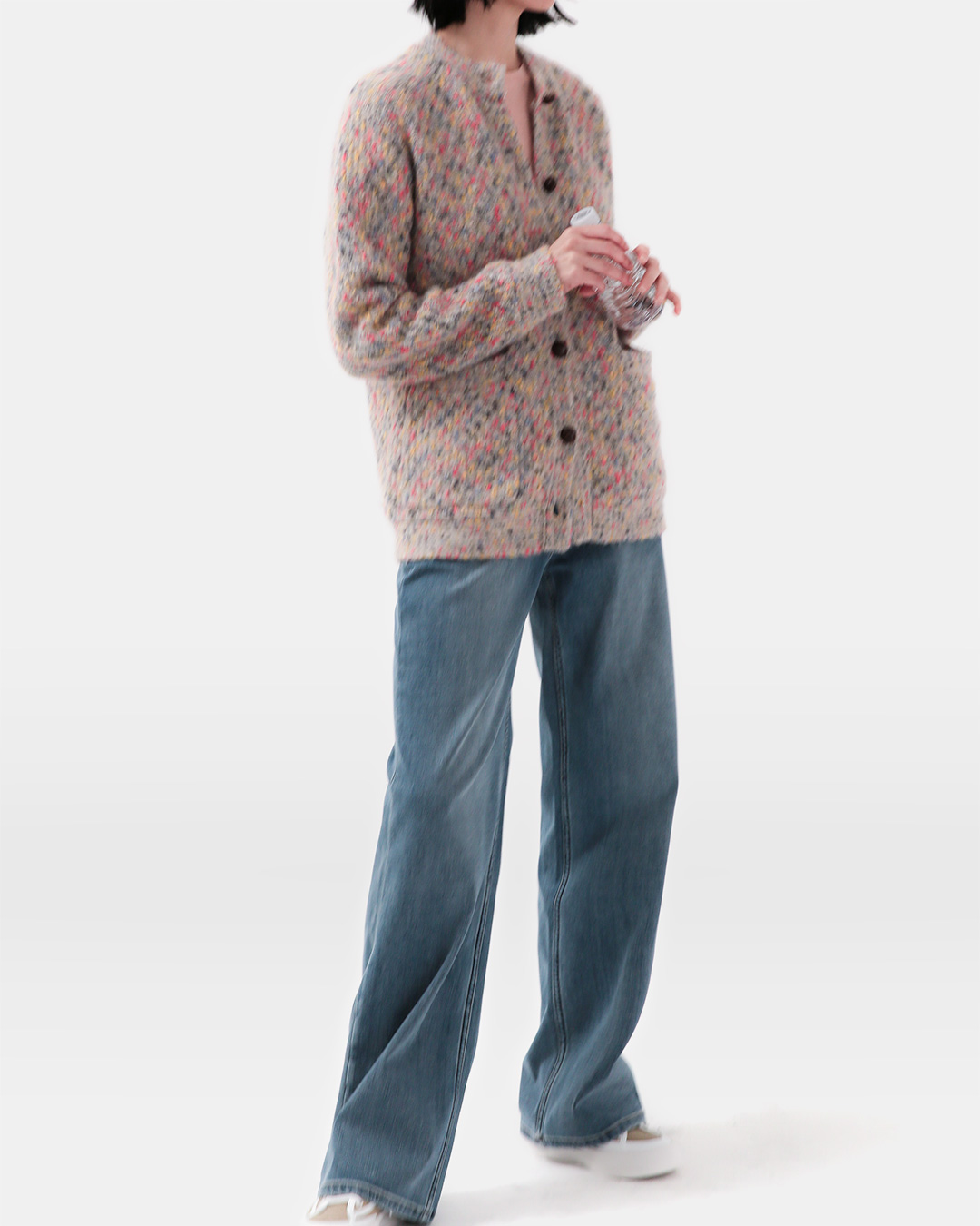 한 올 한 올 섬세하게 섞인 컬러와 질감이 돋보이는 캐시미어·실크·알파카 혼방 트위드 가디건입니다. 두께감이 있는 니트 조직이 공기를 머금어 포근하며, 가벼운 착용감으로 봄까지 아우터처럼 걸칠 수 있습니다.