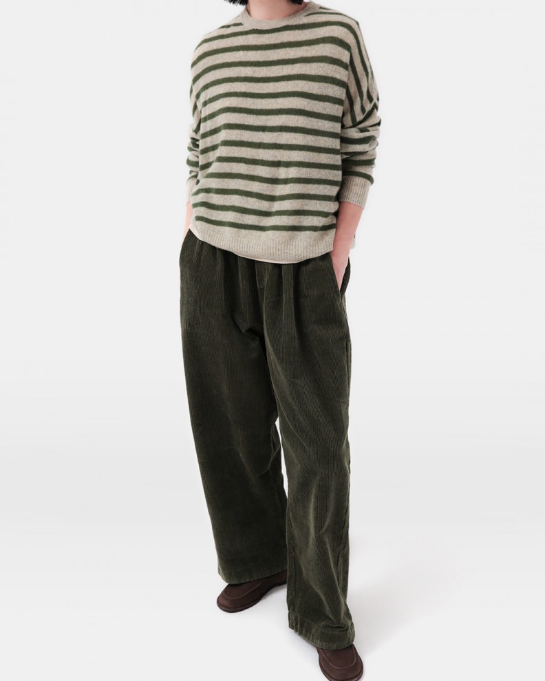 바쁜 날엔 ‘툭’ 입어도 스타일이 완성되는 팬츠가 필요하죠. 입체적인 항아리 실루엣이 힙과 허벅지를 자연스럽게 감싸 주고, 전체 허리 밴딩이 하루 종일 편안함을 지켜줍니다. 세로 골이 선명한 코듀로이 텍스처가 룩에 깊이를 더해 겨울 니트와 패딩에도 단정하게 어울려요. 무심히 입어도 깔끔하고, 오래 입을수록 멋이 쌓이는 겨울의 유니폼 팬츠입니다 😊