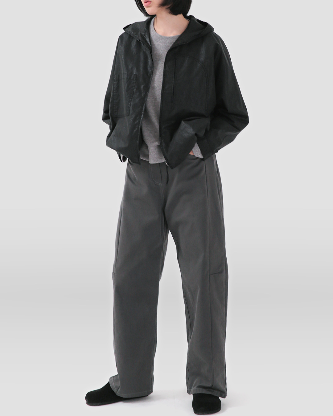 앞판 센터 ‘시임 프론트’ 스티치: 다리가 곧고 길어 보이는 슬랙스 무드 연출