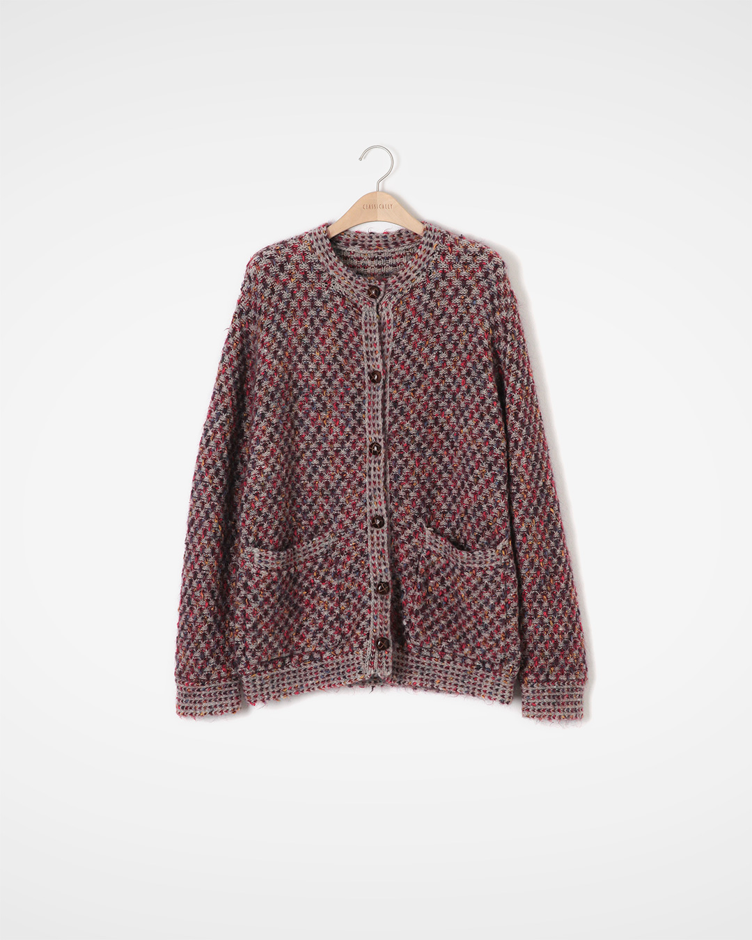 한 올 한 올 섬세하게 섞인 컬러와 질감이 돋보이는 캐시미어·실크·알파카 혼방 트위드 가디건입니다. 두께감이 있는 니트 조직이 공기를 머금어 포근하며, 가벼운 착용감으로 봄까지 아우터처럼 걸칠 수 있습니다.