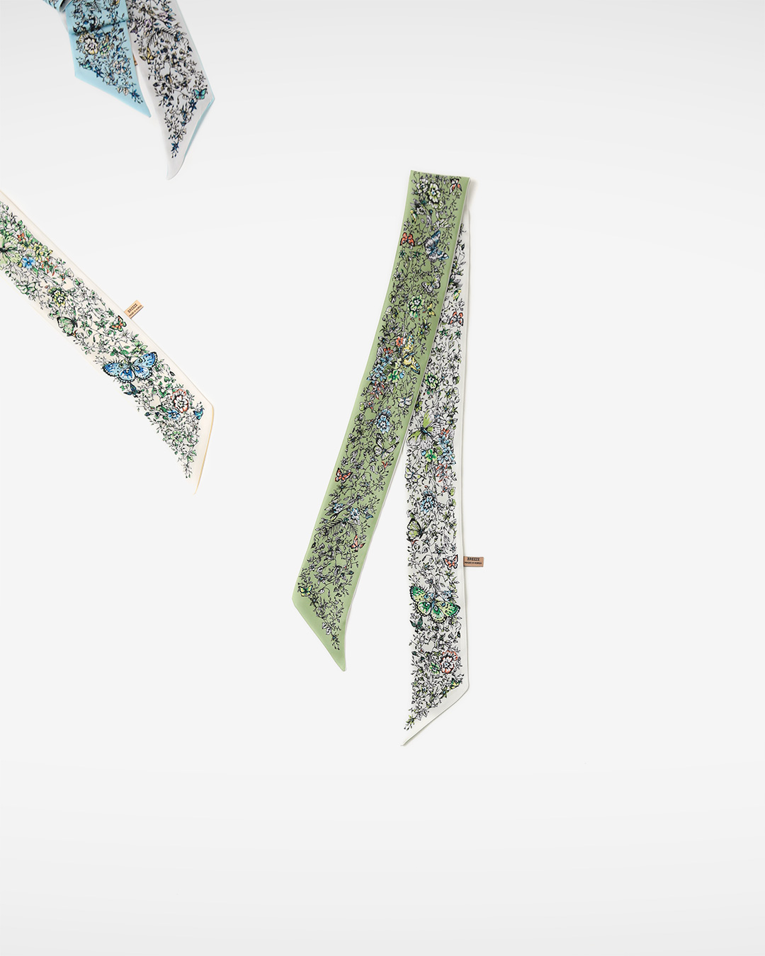 100% 실크 소재로 제작된 화사한 플라워 프린팅 스카프입니다. 폭이 작은 사이즈로 가볍게 목에 두르시거나 가방에 묶어 포인트 주기 좋은 제품이예요 화사한 봄 컬러로 포근해지는 날씨에 함께하기 좋은 아이입니다