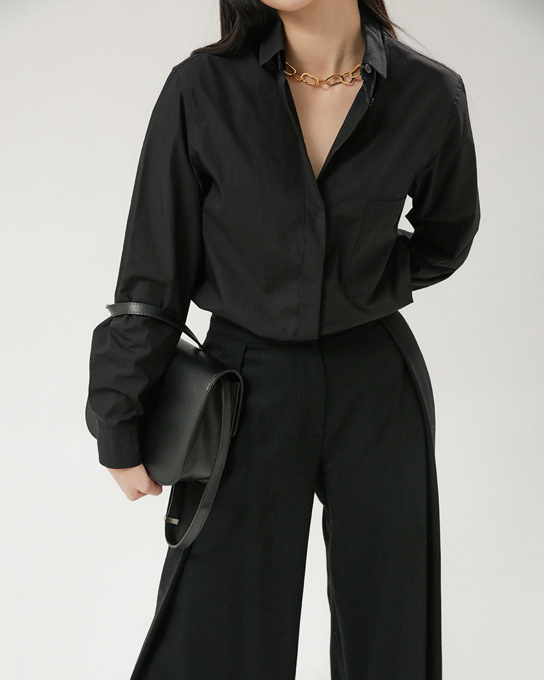 티셔츠 위에 가볍게 오픈해 아우터처럼, 스커트나 슬랙스와 버튼을 모두 잠가 단정하게— 옷장의 기반이 되어 줄 시그니처 셔츠입니다 😊