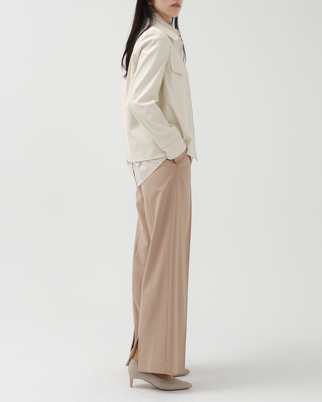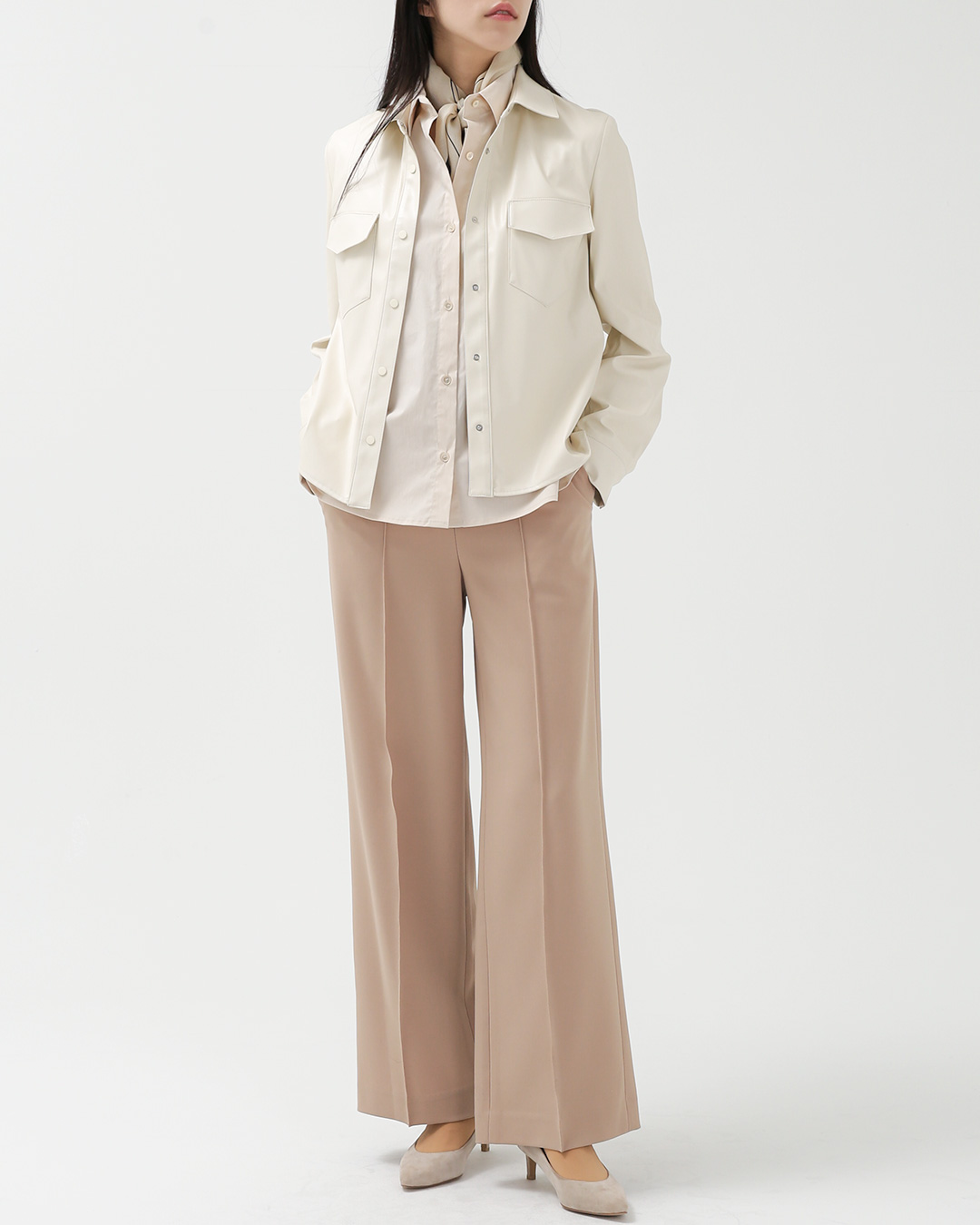 출근길에도 주말 약속에도 ‘편하지만 단정한 바지’를 찾고 계셨다면 이 와이드 팬츠가 답이에요. 중앙 핀턱이 세로선을 또렷하게 잡아주고, 뒤 밑단의 슬릿이 걸음을 가볍게 만들어 다리가 한층 곧고 길어 보입니다. 신축성 좋은 원단이라 앉았다 일어나도 편안함이 유지되고요. 트렌디하지만 과하지 않은 와이드 실루엣으로 데일리와 오피스를 모두 커버합니다. ‘편안함’과 ‘정돈된 우아함’ 사이, 딱 한 끗. 하루를 길게 입기 좋은 와이드 팬츠입니다 😊
