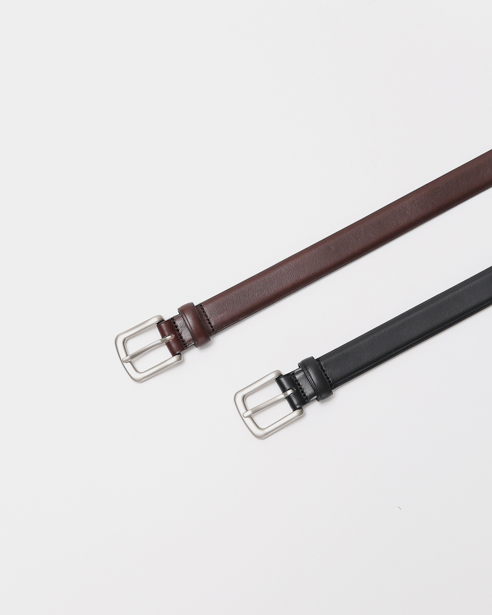 미니멀한 사각 버클에 담백한 라인, 어떤 룩에도 조용히 힘을 더해 주는 슬림 벨트예요. 광택이 은은한 100% 소가죽으로 오래 사용할수록 멋스럽게 에이징됩니다. 작지만 확실한 차이—룩의 마침표가 되어 줄 정석 레더 벨트를 만나보세요 😊