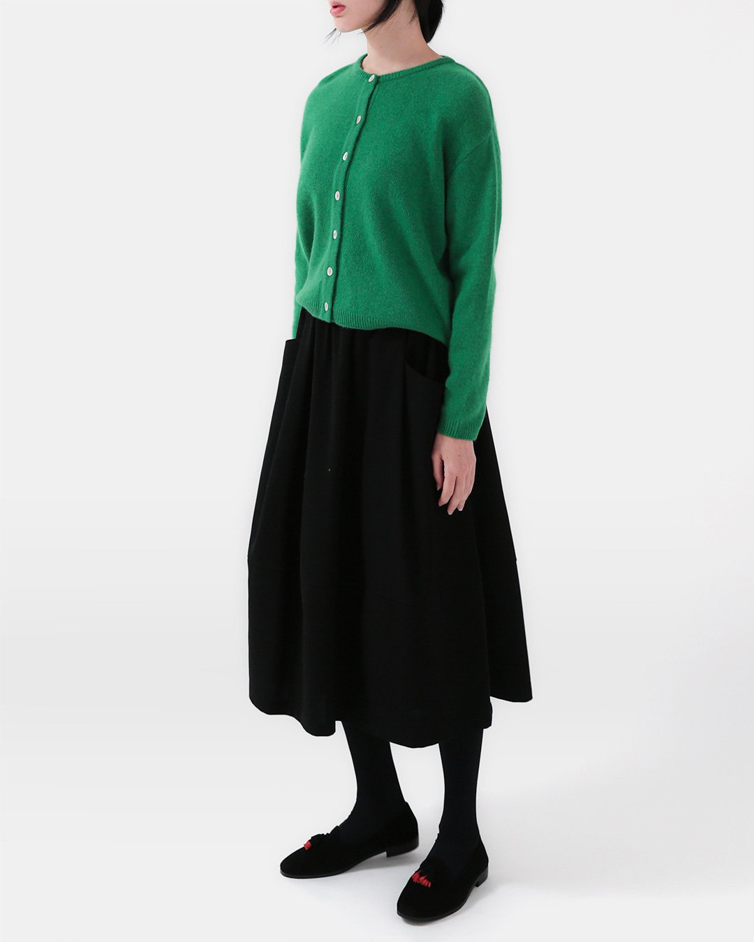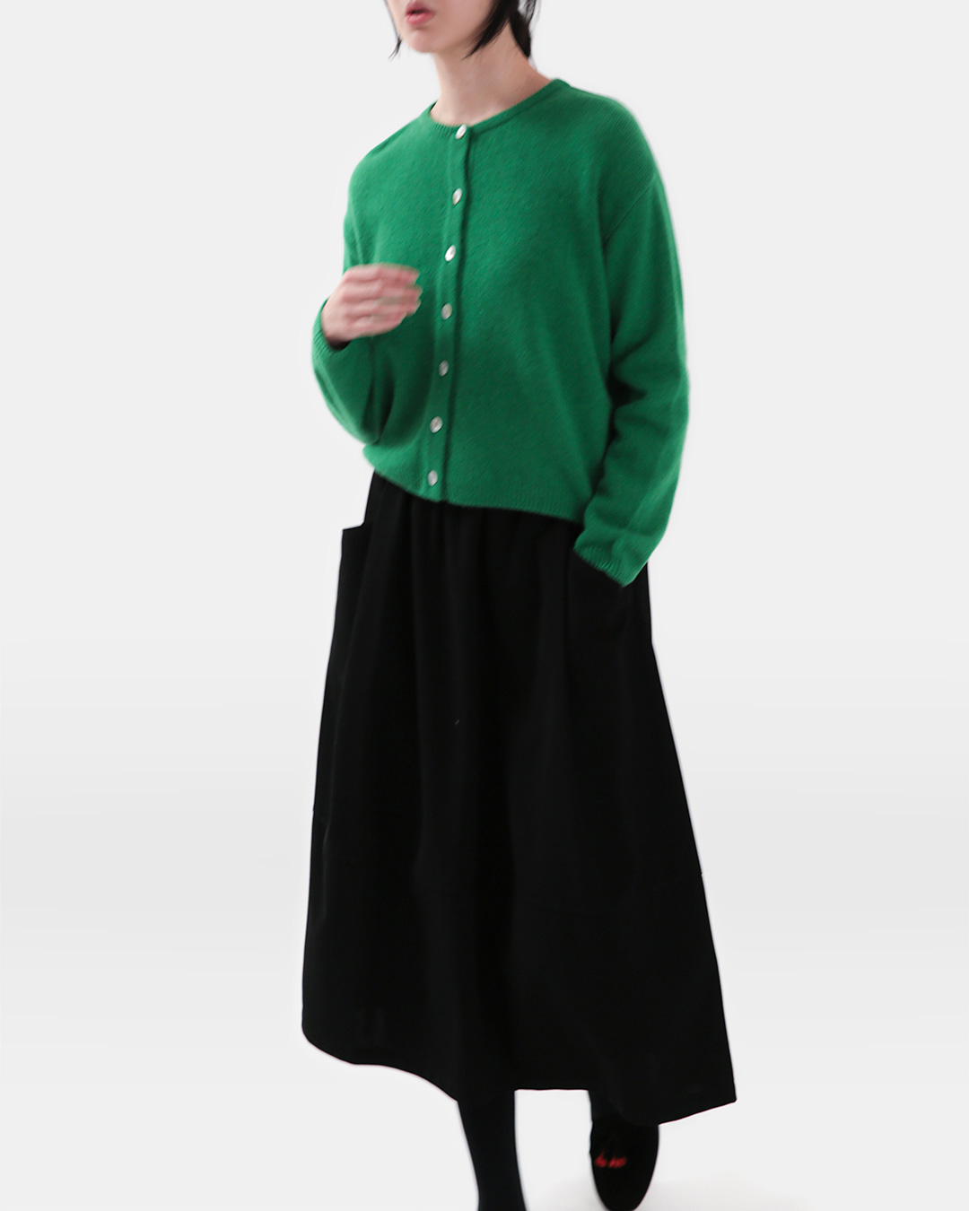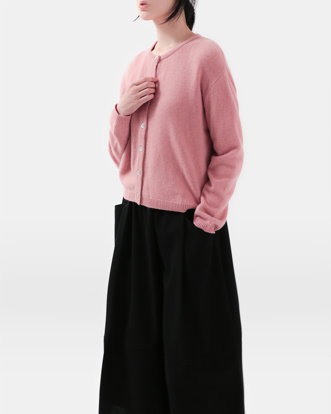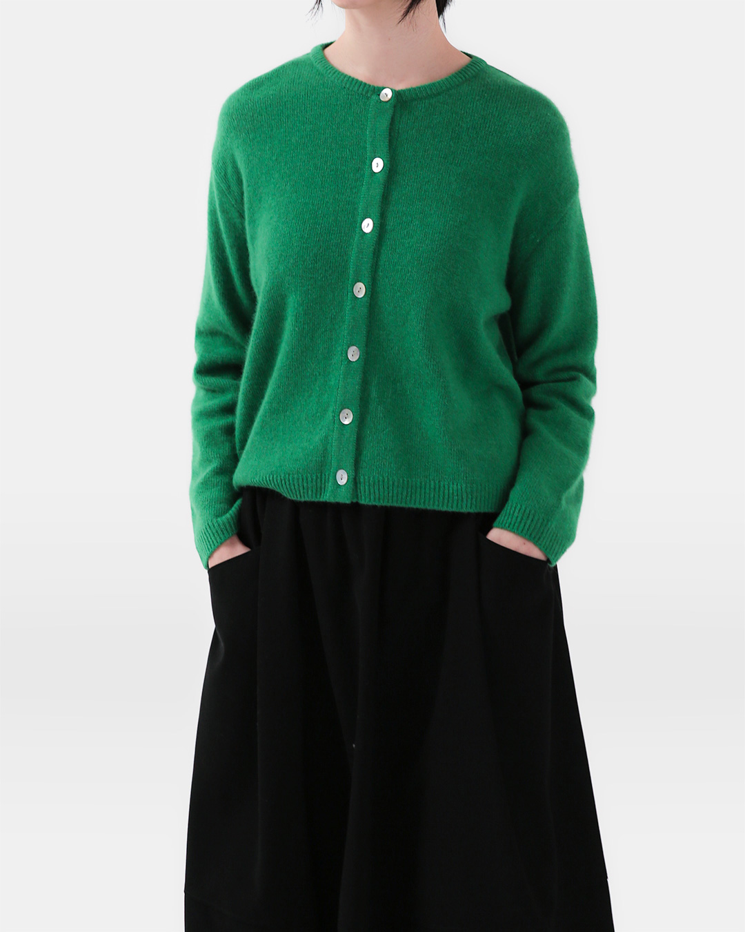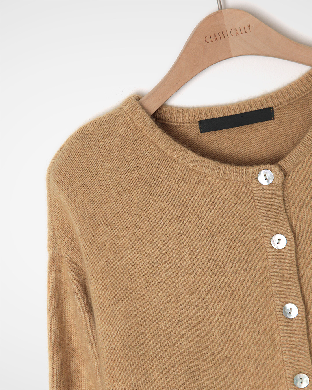 도톰한 코트 속에서도 답답하지 않고, 실내에선 니트 톱처럼 단정한—라쿤 50%와 울 50%의 황금 비율로 완성한 크루넥 가디건입니다. 살짝 퍼지는 보송한 헤어가 은은한 고급스러움을 더하고, 버튼을 여미면 풀오버처럼, 열면 가볍게 아우터처럼—하루의 TPO에 맞춰 유연하게 변주돼요 😊