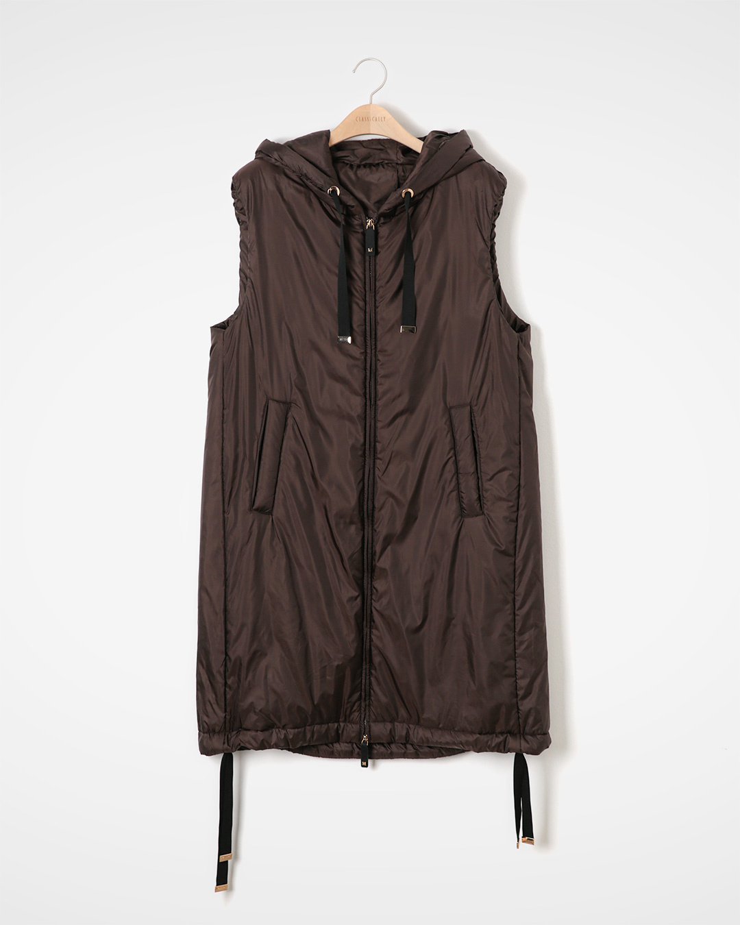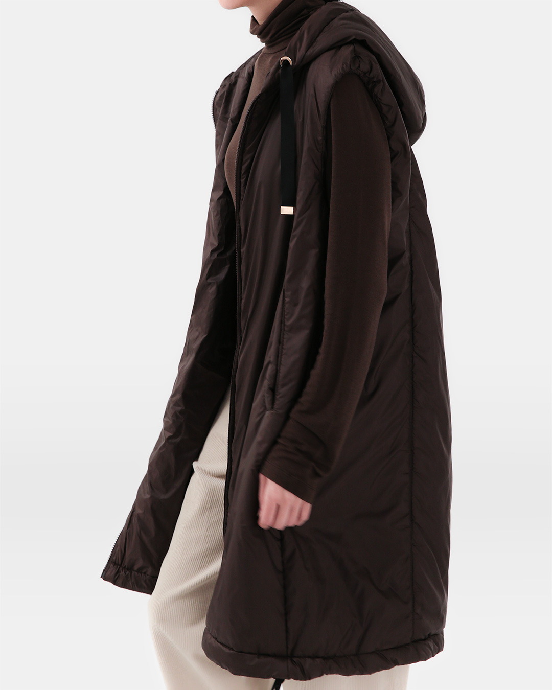 lightweight hooded long padded gilet