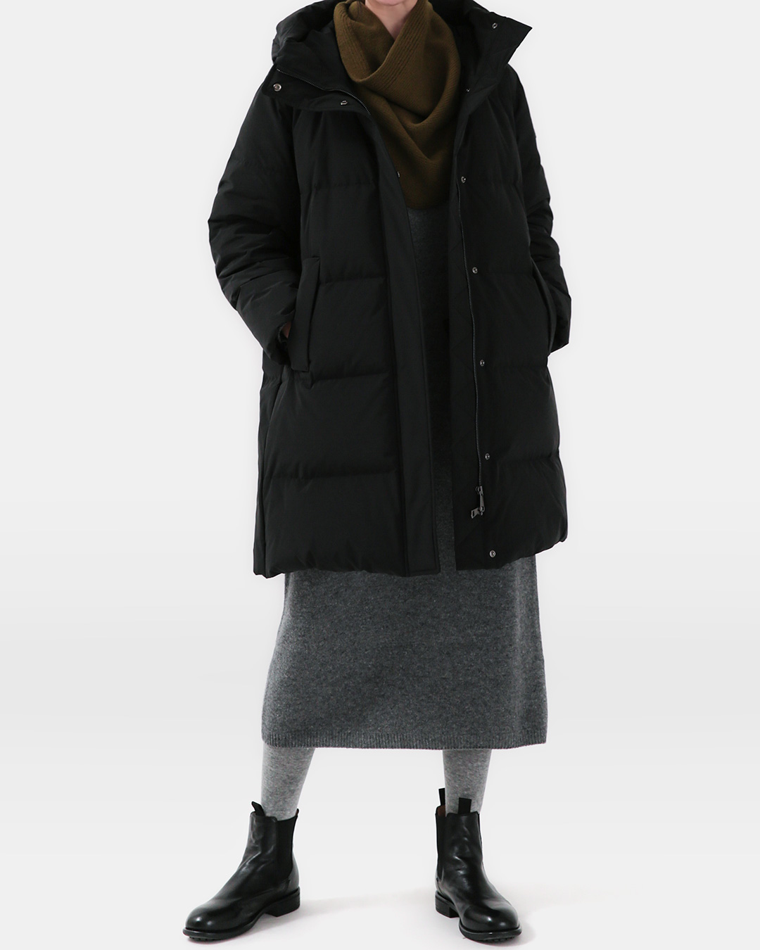 아침에 눈을 뜨고 오늘 해야 할 일들을 떠올리다 보면, 뭘 입지? 하는 생각이 가장 번거롭게 느껴질 때가 있죠. 이 원피스는 그런 순간에 가장 먼저 손이 가는, 말 그대로 하루를 통째로 맡길 수 있는 아이템이에요. 니트 한 벌만 쓱 꺼내 입었을 뿐인데, 집 안에서도 단정하고 출근길 코트 안에서도 차분하게 빛나는 겨울의 유니폼이 되어줄 거예요 😊