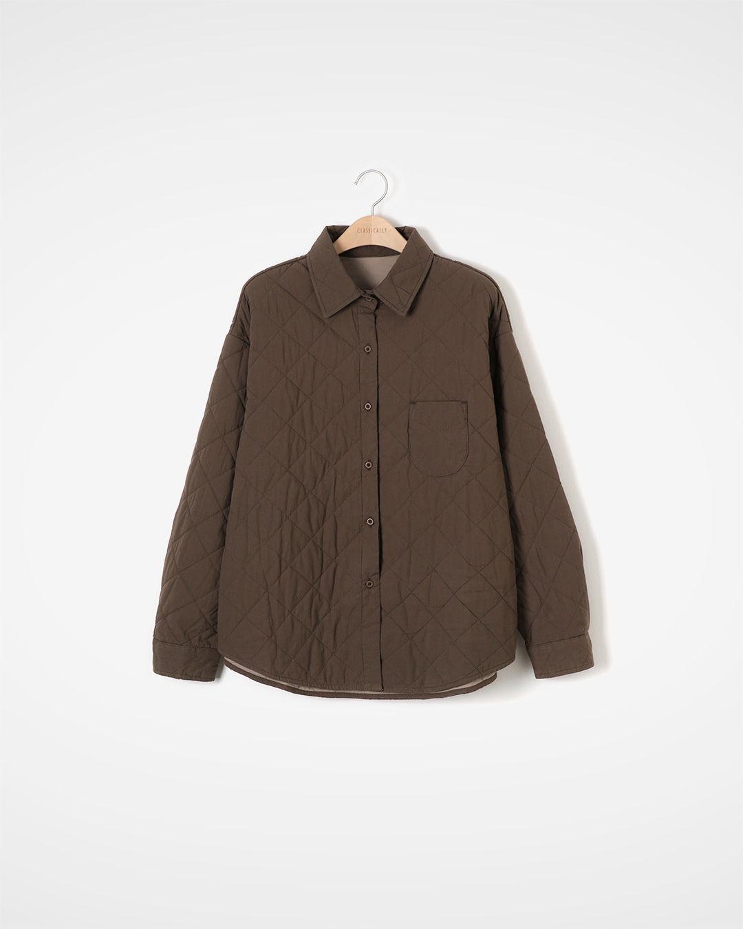 코튼100% 소재에 다이아 퀼팅 스티치를 더해 바스락하면서도 포근한 터치감 구현한 셔츠입니다. 일반 셔츠보다 살짝 도톰한 두께로 단독 착용 시에는 라이트 아우터처럼, 추운 날에는 니트 조끼 안 이너로 활용 가능합니다. 어깨와 품에 여유를 둔 실루엣이라 부해 보이지 않는 균형 잡힌 핏을 느끼실 수 있어요. 힙을 살짝 덮는 길이와 라운드 밑단 디자인으로, 바지 안에 넣어 입어도 자연스럽고 밖으로 꺼내 입어도 단정하게 입기 좋아요. 프론트 포켓 디테일이 셔츠 특유의 캐주얼함을 더해주면서 전체적으로는 미니멀한 인상이라 다양한 하의와 매치하기 쉬워요. 부드러운 아이보리와 깊이 있는 카키 브라운 컬러로 만나보세요 😊