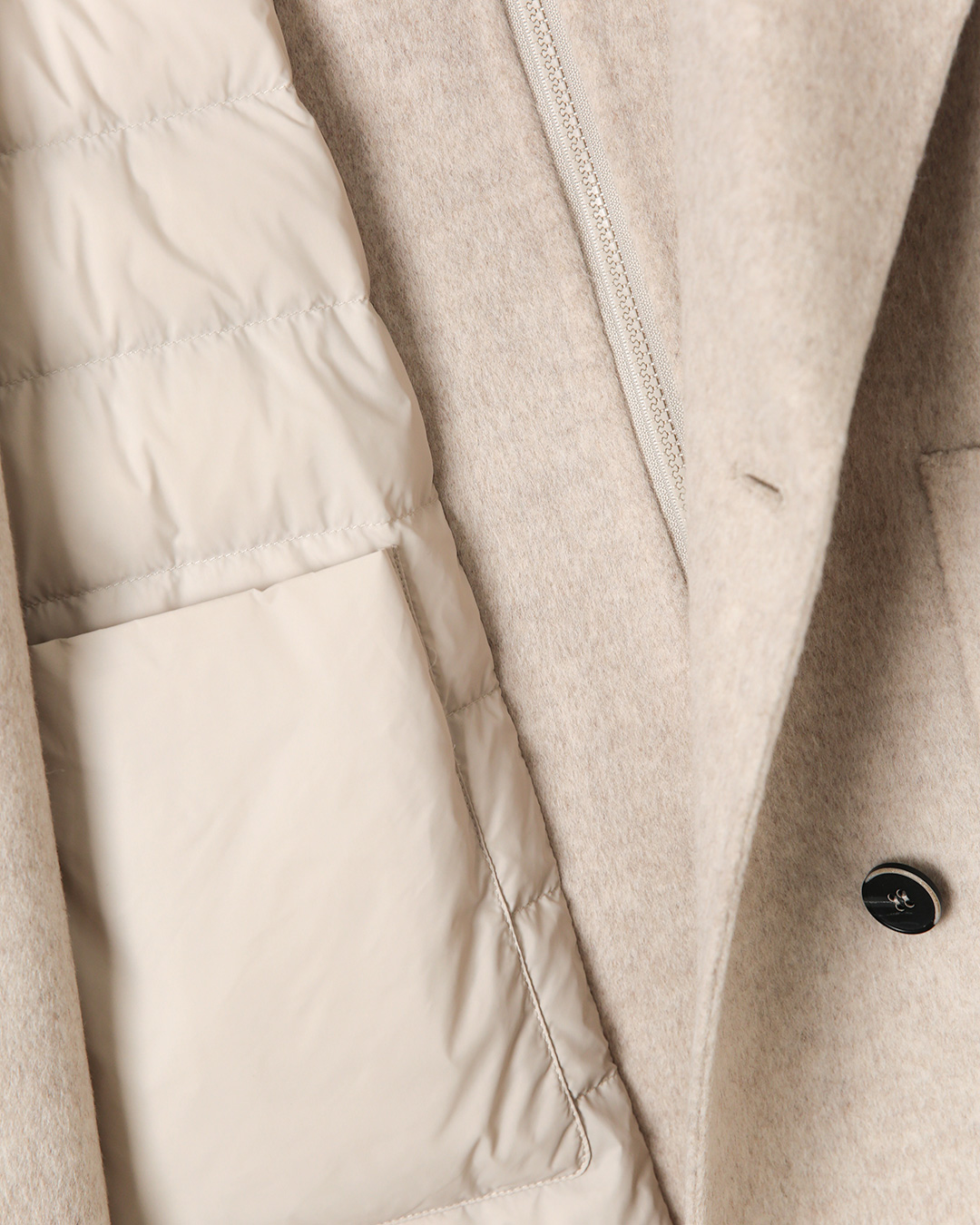 월요일 아침처럼 정신없는 날에도, 코트 하나만 잘 입으면 거울 앞에서 오래 고민하지 않아도 되죠. 이 코트는 그야말로 '아우터 하나로 해결하는 겨울 옷장'에 가까운 아이템이에요. 부드러운 캐시미어 울 코트에 롱 패딩 베스트가 함께 구성되어 있어 찬바람이 부는 초겨울부터 한파까지 겹쳐 입기만 하면 되는 든든한 조합입니다. 얼굴빛을 환하게 살려주는 은은한 오트 베이지 톤 덕분에 바쁜 날에도 정돈된 우아함을 놓치지 않게 해줄 거예요 😊