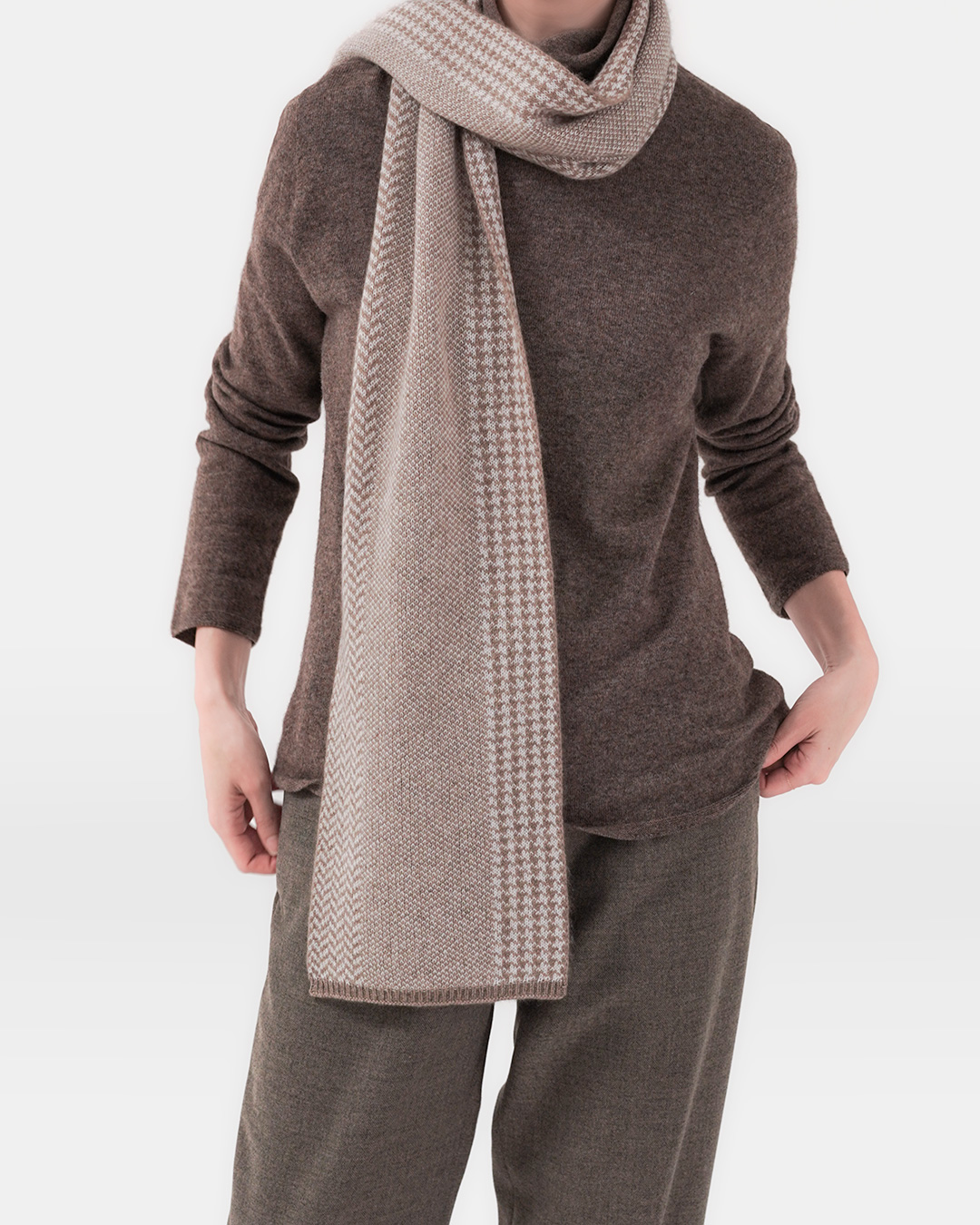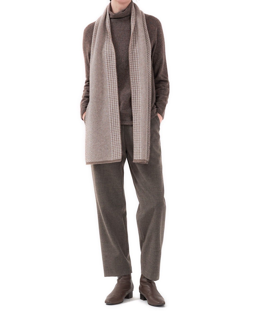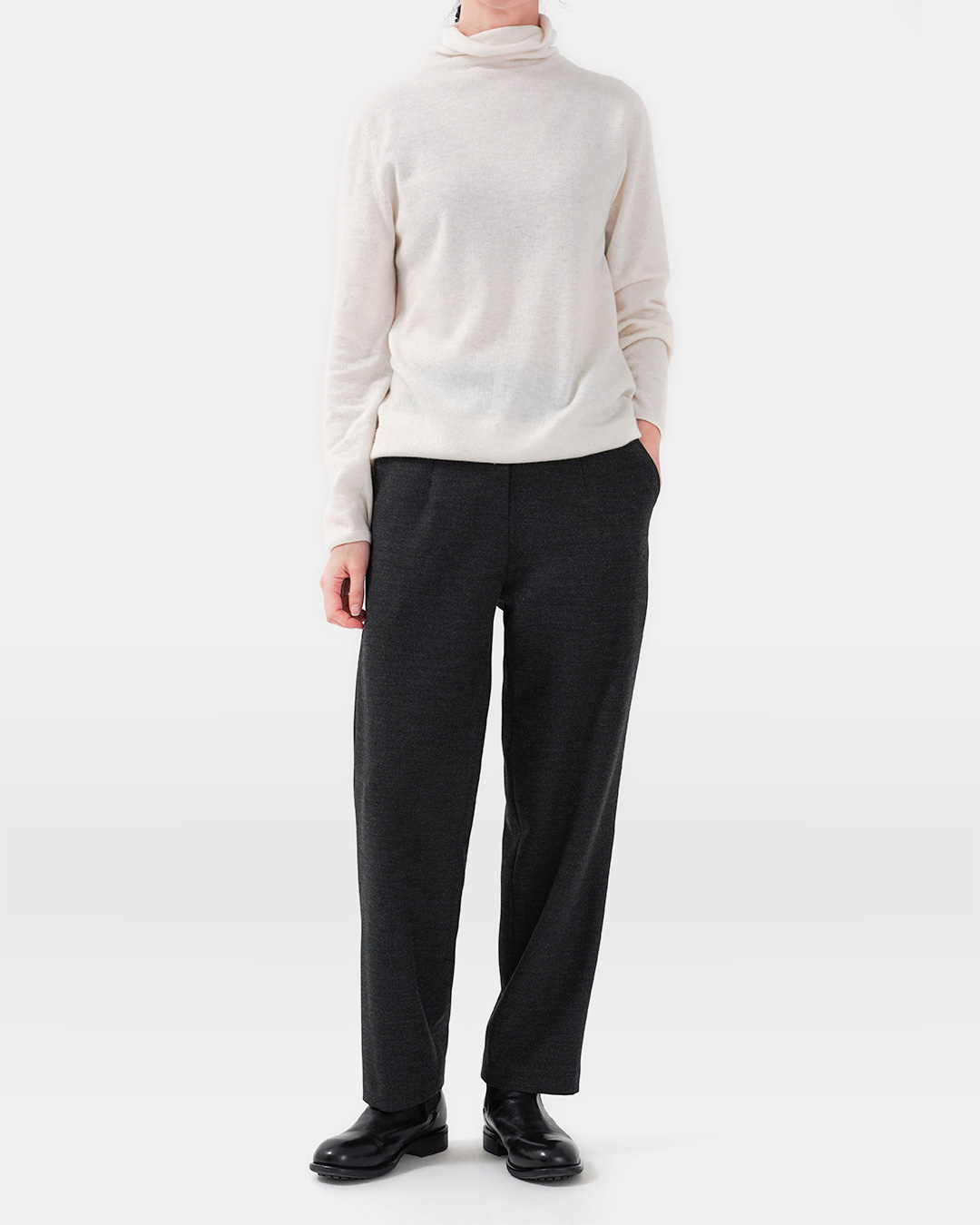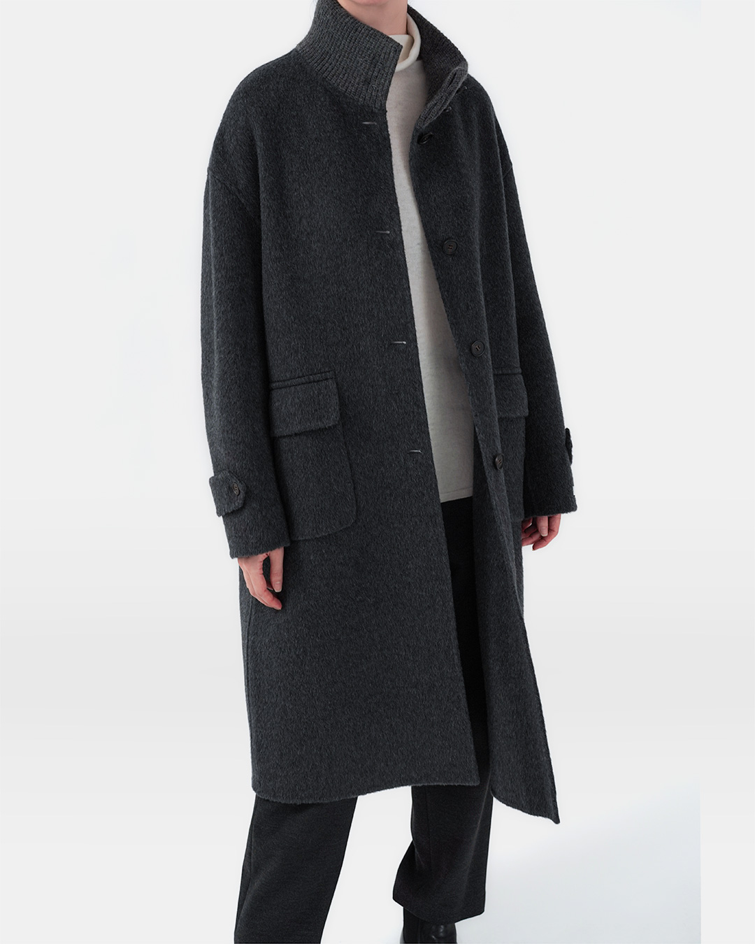 가장 자주 입는 옷은 결국 ‘의외로 특별할 필요가 없는’ 옷이더라고요. 대신 손이 갈수록 더 마음에 드는 소재, 하루 종일 편한데 거울 속 나는 단정해 보이는 핏. 이 니트는 그 기본을 정말 잘 지킨 아이템이에요. 울 90%에 캐시미어 10%를 더해, 포근하지만 과하게 무겁지 않고—낙낙한 실루엣 덕분에 이너를 챙겨 입어도 답답함이 덜합니다. 출근길엔 자켓 안에 조용히 들어가고, 주말엔 데님과도 자연스럽게 어울리는 “유니폼 니트”에 가깝죠. 컬러도 참 영리해요. 차콜은 도시적으로, 아이보리는 얼굴을 환하게, 브라운 계열은 따뜻한 분위기를 만들어주니까요. 무엇보다 목을 부드럽게 감싸는 넥 라인이 포인트예요. 목을 ‘조이지 않는’ 터틀/롤넥 느낌이라, 실내에서 오래 입어도 피곤함이 덜한 타입 😊