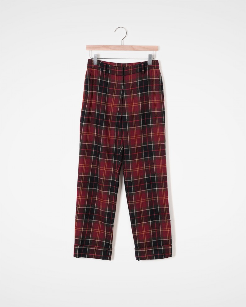 겨울 룩에 한 끗 포인트가 필요할 때, 체크만큼 확실한 답이 없죠. 카키와 와인 컬러를 베이스로 옐로우, 레드, 아이보리, 브라운 톤이 조화롭게 섞여 있어 상의 컬러 선택 폭이 넓고, 심플한 니트 하나만 입어도 룩이 살아나는 팬츠입니다. 도톰한 울(70%) 혼방 원단으로 겨울까지 든든하게 착용 가능하고, 비스코스 전체 안감으로 피부에 닿는 감촉은 한층 부드럽게 잡아줬어요. 밑단 턴업이 더해진 스트레이트 핏이라 로퍼나 부츠와 매치했을 때 실루엣이 깔끔하게 정돈되고, 니트+코트 조합으로 캐주얼하면서도 격식 있는 무드를 연출하기 좋습니다 😊