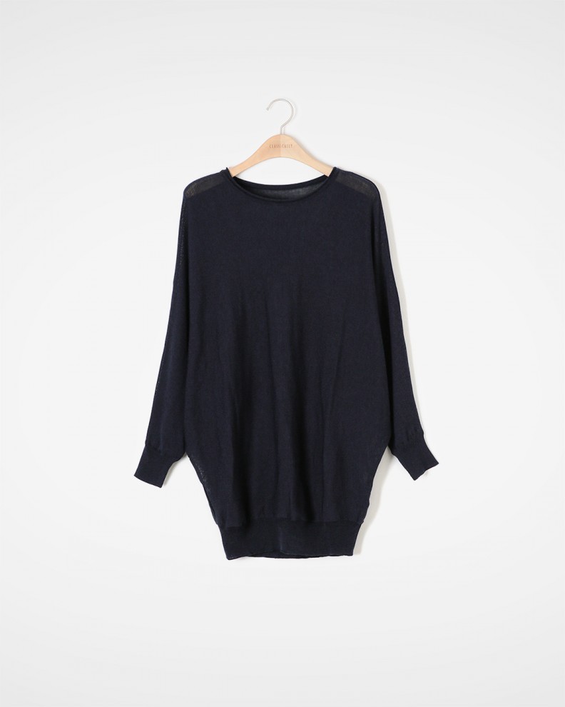 하루가 길어지는 계절엔 시원한데 단정한 옷이 필요하죠. 이 니트는 몸에 붙지 않는 시어한 결로 공기를 머금고, 자연스럽게 떨어지는 루즈한 실루엣이 전체 분위기를 정리해줘요. 출근길엔 깔끔하게, 주말엔 느슨하게! 어느 쪽으로 입어도 과하지 않게 멋이 남습니다. 비스코스60%, 코튼40% 혼방이라 촉감은 부드럽고, 바람은 잘 통과시키는 편. 특히 돌먼(가오리) 라인이라 팔과 상체 라인이 도드라지지 않아서, 편한데 예뻐 보이는 쪽으로 힘을 실어주는 아이템이에요. 네이비/블랙처럼 베이직한 컬러일수록 원단의 결감이 더 고급스럽게 살아납니다 😊