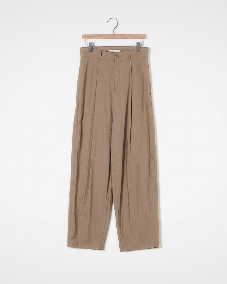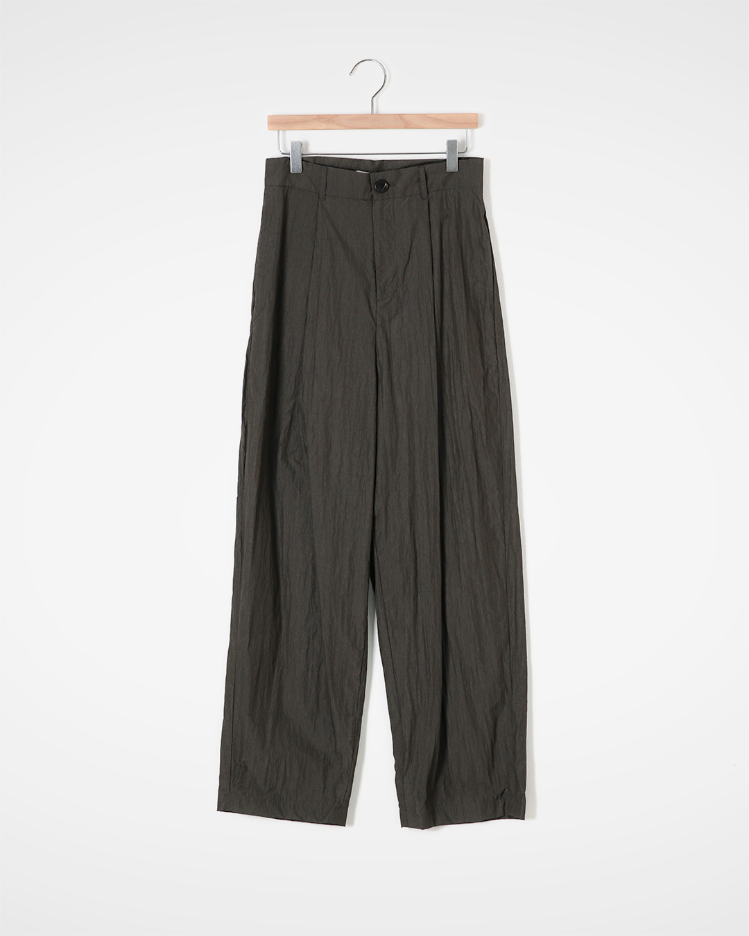 시원함은 포기하지 않으면서, 실루엣은 단정하게 잡아주고, 생활 주름까지 멋으로 바꿔주는 팬츠를 찾는 분께 딱 맞는 아이템이에요. 일본 수입 나일론 원단 특유의 바스락한 터치와 가벼운 통기감이 매력입니다. 몸에 들러붙지 않아 습한 날에도 쾌적하고, 표면감 덕분에 구김이 과하게 티 나기보다 자연스러운 텍스처로 정리돼요. 반려동물 털도 비교적 잘 달라붙지 않아 데일리로 손이 자주 가는 쪽에 가까워요. 핏은 여유 있게 떨어지다가 밑단으로 갈수록 자연스럽게 모이는 테이퍼드 라인. 길이감이 충분해서 멋은 살리고, 움직임은 편안하게 만들어 줍니다. 앞쪽 깊은 핀턱이 다리 라인을 정돈해주고, 뒤쪽 와이드 플랩 포켓 디테일로 워크웨어 무드를 한 끗 더해 심플한데 심심하지 않은 균형을 잡았어요. 같은 컬렉션의 relaxed shirt와 함께 매치하면 점프수트처럼 연결되는 셋업 무드로 연출 가능하고, 단품으로는 티셔츠부터 셔츠, 니트까지 폭넓게 받쳐줍니다 😊