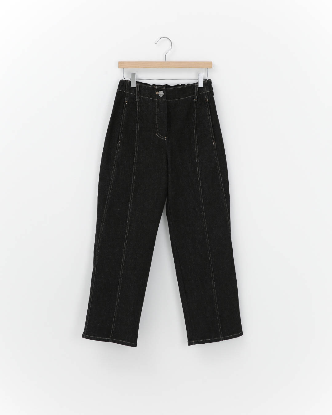 하루 종일 앉았다 일어났다, 계단을 오르내리고, 장을 보고 아이를 따라다니다 보면 데님인데도 피곤하지 않은가가 진짜 기준이 되죠. 이 팬츠는 그 기준을 꽤 정확하게 맞춰요. 겉으로는 단정한 데님인데, 몸은 훨씬 가볍게 느껴지는 쪽으로요. 안정적인 테이퍼드 핏에 중앙 더블 스티치 라인이 들어가 있어 다리가 곧게 정리돼 보이고, 은근히 길어 보이는 효과도 있어요. 허리 뒤 밴딩 디테일은 오래 입을수록 더 고마운 포인트. 딱 맞게 조이기보다 ‘안정감 있게 받쳐주는’ 쪽이라, 데님 특유의 답답함이 훨씬 덜합니다. 컬러는 짙은 블루와 블랙. 상의가 어떤 톤이든 무심하게 받쳐주면서도, 캐주얼로만 흘러가지 않는 정돈된 데일리를 만들어줘요. 55, 66, 77 사이즈로 준비되어 있어 지금 필요한 핏으로 바로 선택할 수 있습니다 😊