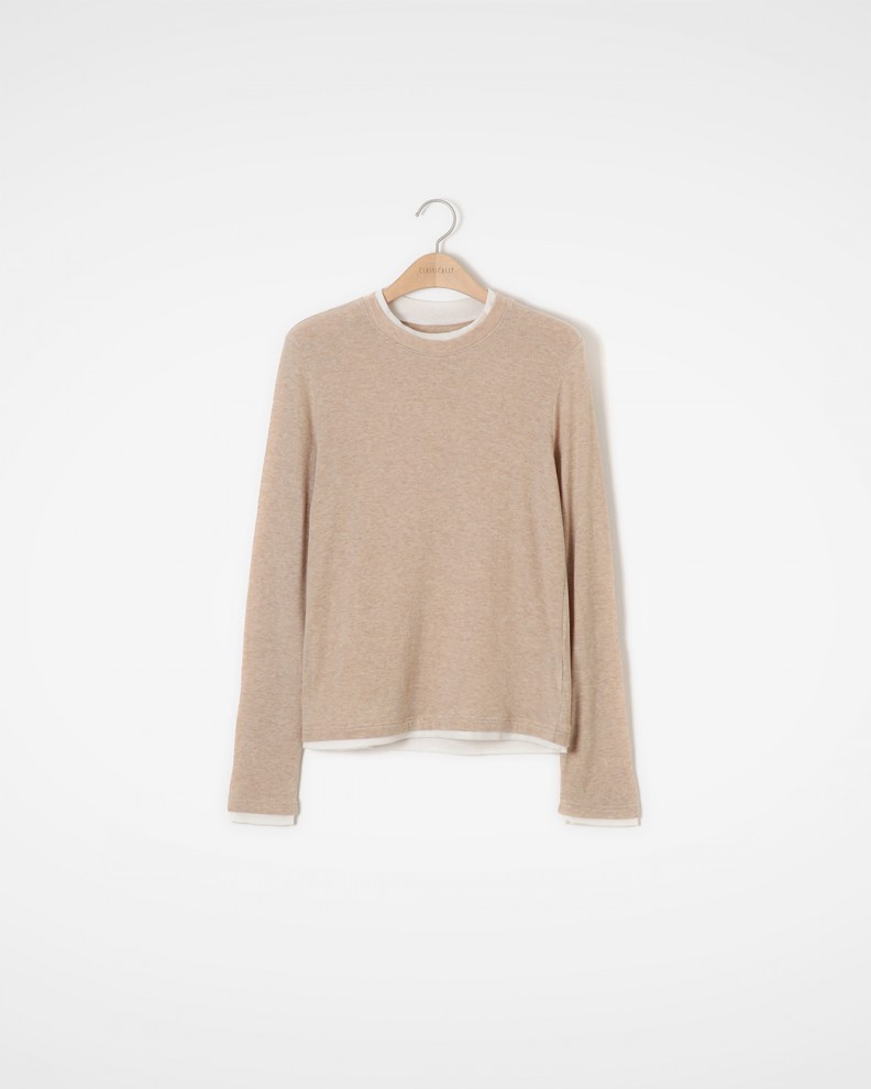 • 넥과 밑단, 소매 끝에 아이보리 이중단 처리로 자연스러운 레이어드 효과