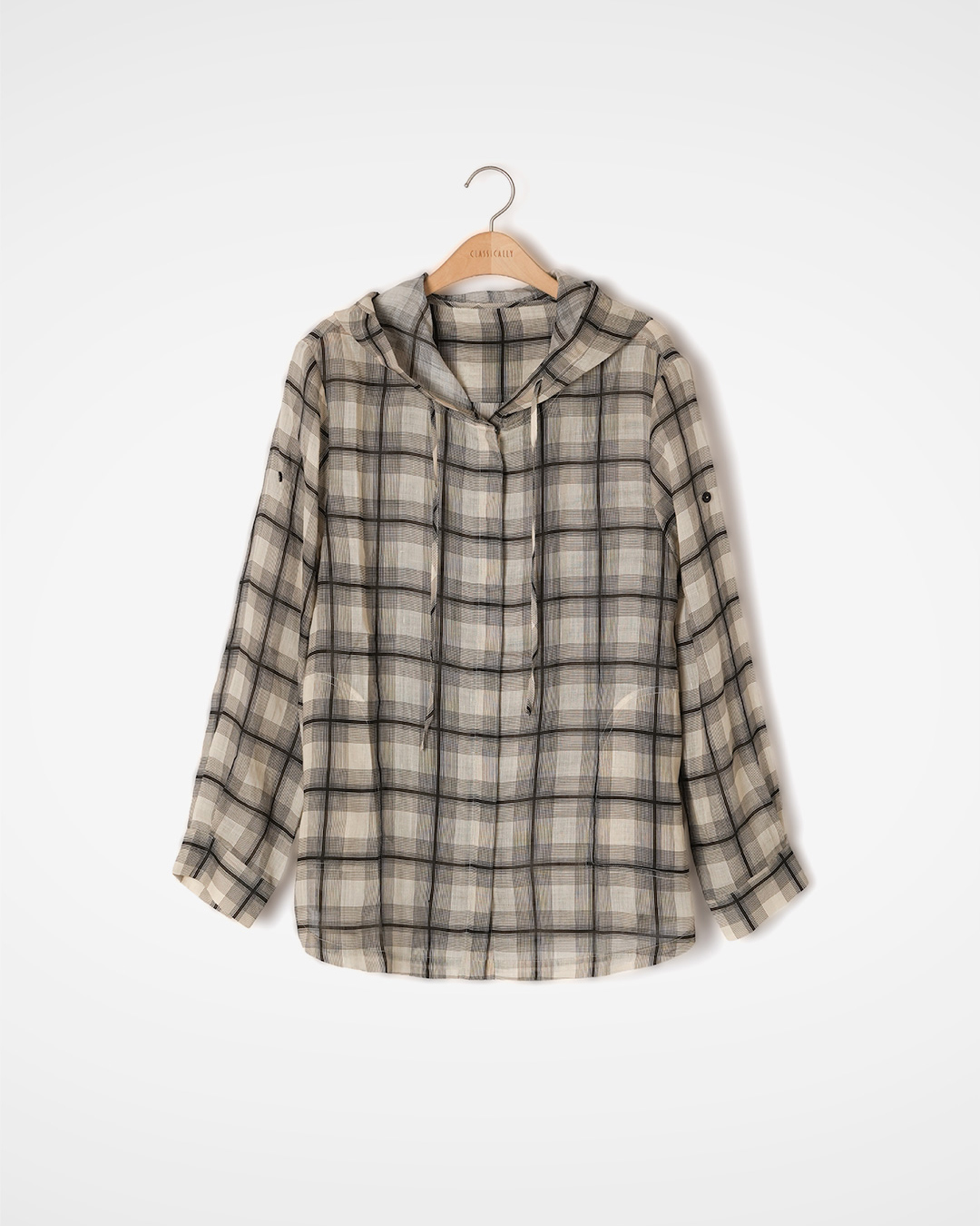 아이보리, 베이지, 브라운, 그레이, 블랙처럼 차분한 모노톤 차림 위에 무심하게 한 겹 더해주기 좋은 체크 패턴이 특히 매력적입니다. 잔잔한 색감 안에서 패턴이 과하지 않게 살아 있어 기본 아이템들만 입었을 때 느껴질 수 있는 단조로움을 자연스럽게 덜어주고요. 후드 디테일 덕분에 지나치게 포멀하지 않으면서도 전체 인상은 차분하고 세련되게 정리됩니다. 일상에서는 물론 여행이나 장거리 이동 때도 꽤 유용하게 입게 될 아이템이에요 😊