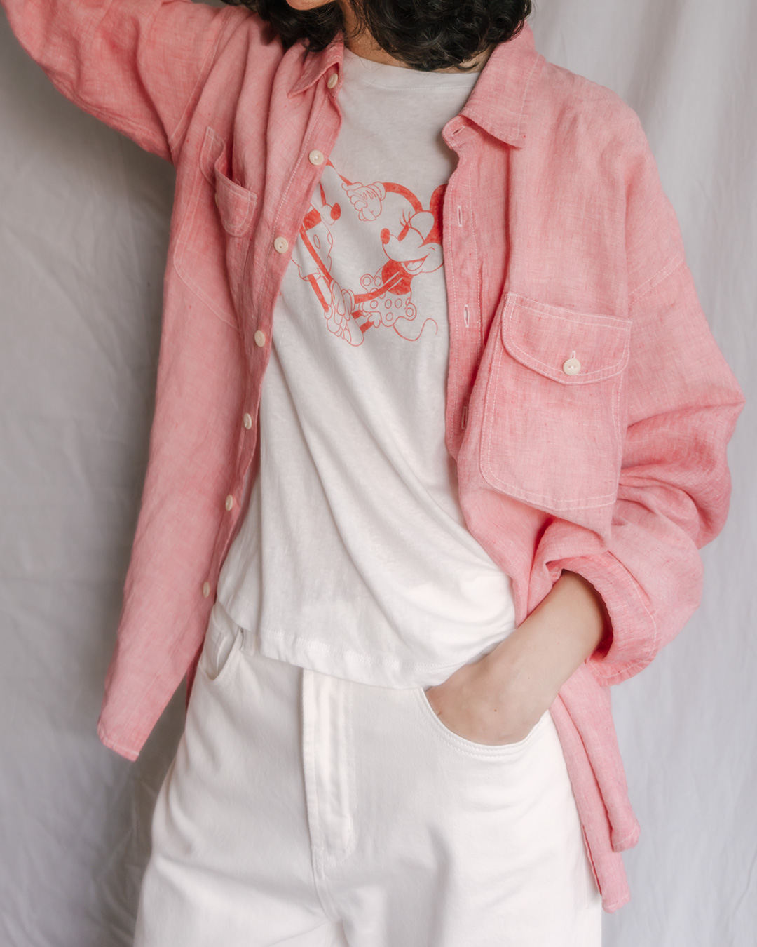 날이 따뜻해질수록 셔츠 한 장의 역할이 더 중요해지죠. 너무 힘주지 않았는데도 멋스럽고 가볍게 걸쳤을 뿐인데 분위기가 살아나는 옷이 필요해집니다. 이 셔츠는 그런 계절의 바람을 가장 잘 담아낸 아이템이에요. 산뜻한 핑크 레드 톤이 룩에 생기를 더해주고 린넨 100% 특유의 내추럴한 결이 어우러져 화사하지만 부담스럽지 않게 입을 수 있습니다. 평소 베이식한 팬츠와 스커트를 즐겨 입는 분들이라면, 이 셔츠 한 장만으로도 평범한 일상복이 훨씬 싱그럽고 세련되게 느껴질 거예요 😊