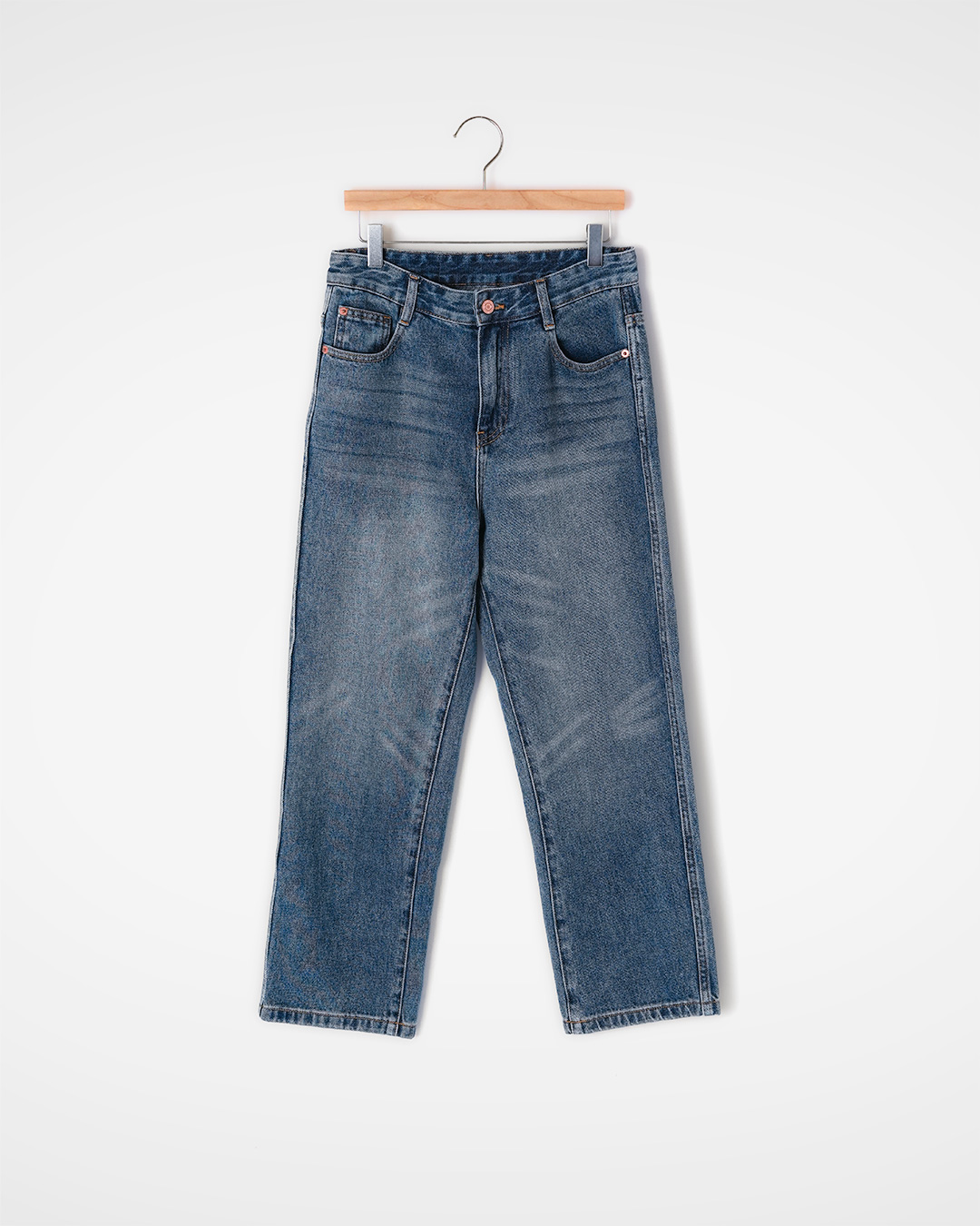 이 팬츠는 코튼 100% 특유의 담백한 매력이 살아 있으면서도, 자연스럽게 들어간 워싱 덕분에 처음부터 너무 힘주지 않은 멋이 느껴지는 데님이에요. 길지 않은 크롭 기장이라 답답하지 않고, 발목이 드러나면서 전체 실루엣도 한층 경쾌하게 정리됩니다 😊