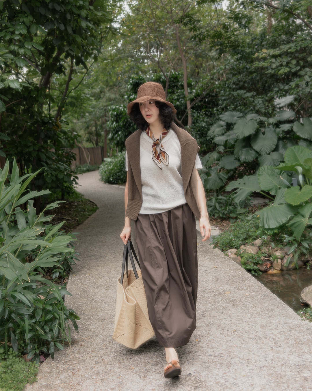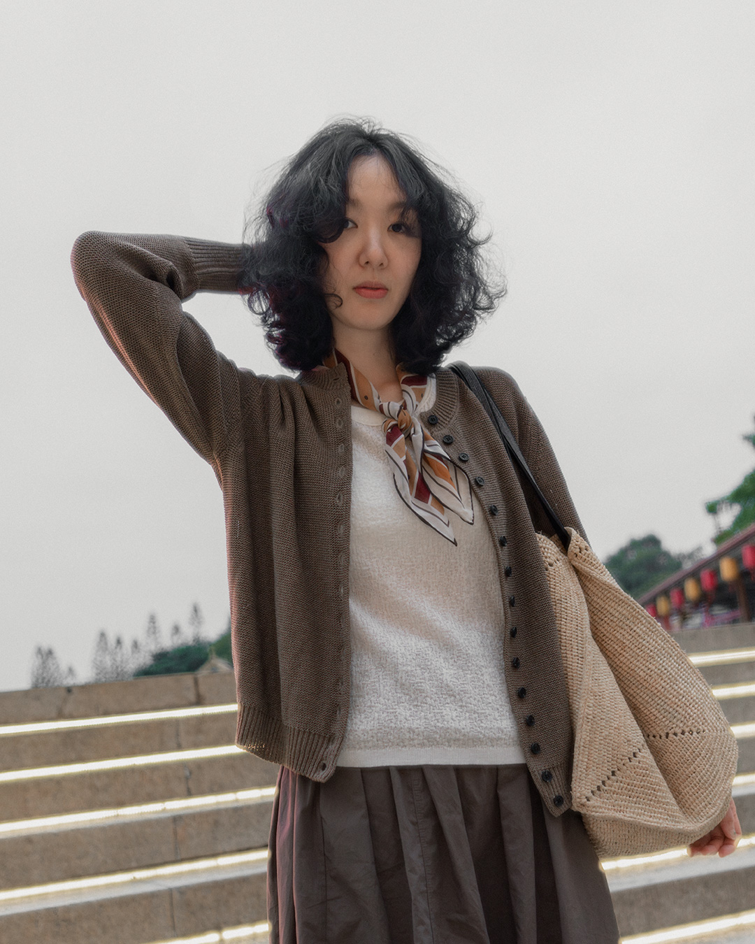 여름에는 얇은 티셔츠 하나로 끝내기 쉬운데, 막상 입어보면 조금 허전하게 느껴질 때가 많아요. 이 가디건은 그런 순간에 자연스럽게 더해지는 한 겹이에요. 툭 걸치기만 해도 전체 룩의 균형이 잡히고 과하지 않게 단정한 분위기를 만들어줍니다 😊