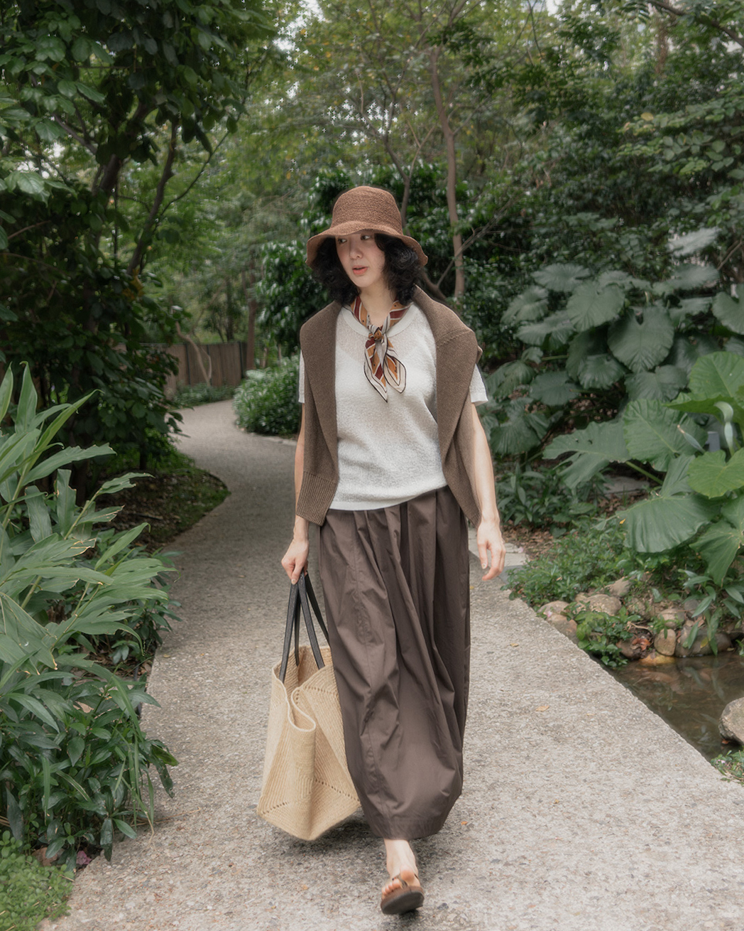 티셔츠처럼 편한데 더 단정한 느낌으로 드레시하게 입기 좋은 니트 탑입니다. 실크와 린넨이 혼방된 여름 소재로 통기성이 뛰어나 시원하게 입기 좋아요. 표면에 은은하게 살아 있는 입체적인 조직감 덕분에 훨씬 정돈되고 고급스러운 인상을 느끼실 수 있어요. 티셔츠처럼 편하게 입을 수 있으면서도 충분히 분위기가 나고, 슬랙스나 스커트와 함께하면 과하지 않게 단정한 여름 룩이 완성되는 제품이에요. 힘주지 않았는데도 어딘가 잘 갖춰 입은 듯 보이는, 그런 한 장입니다 😊
