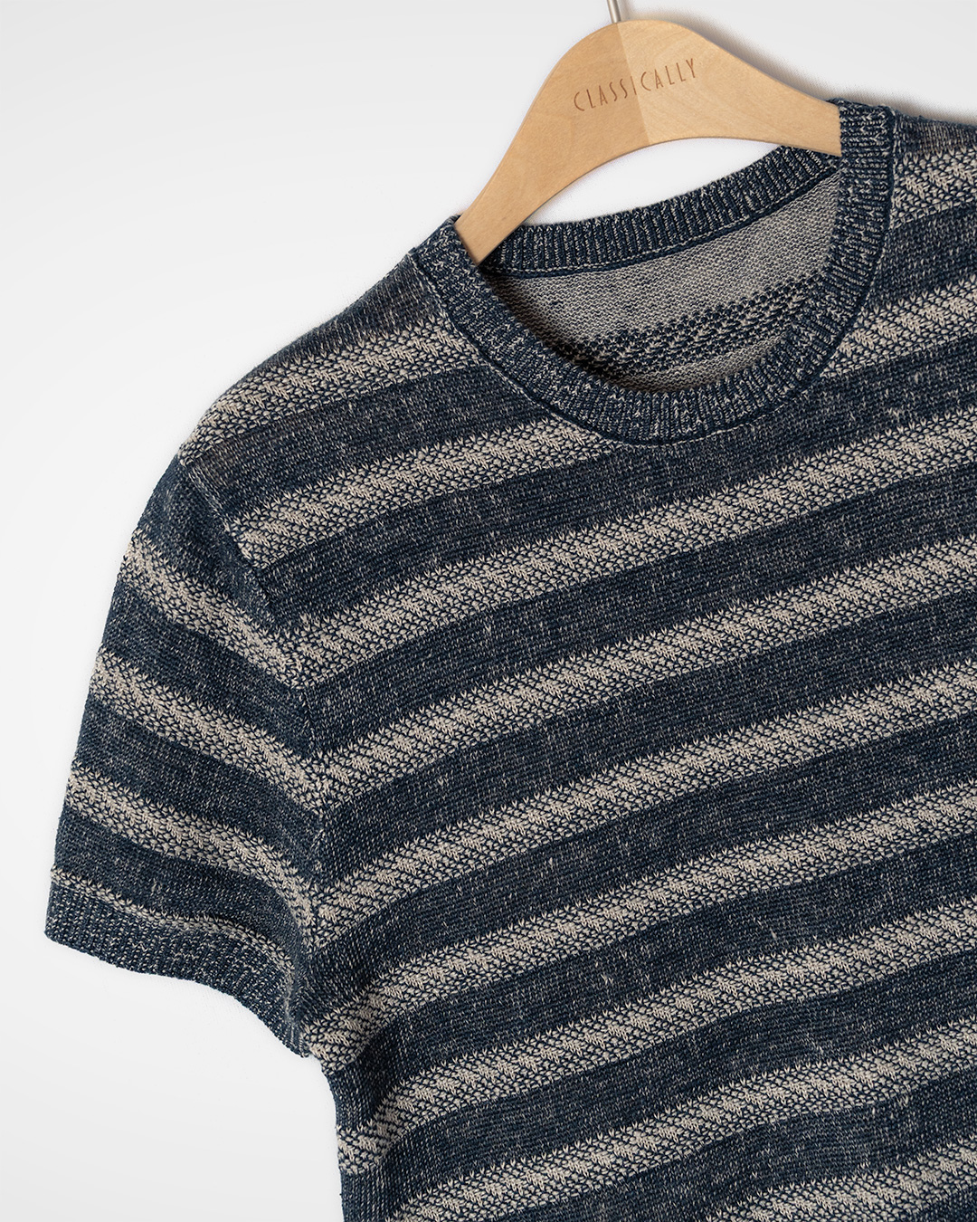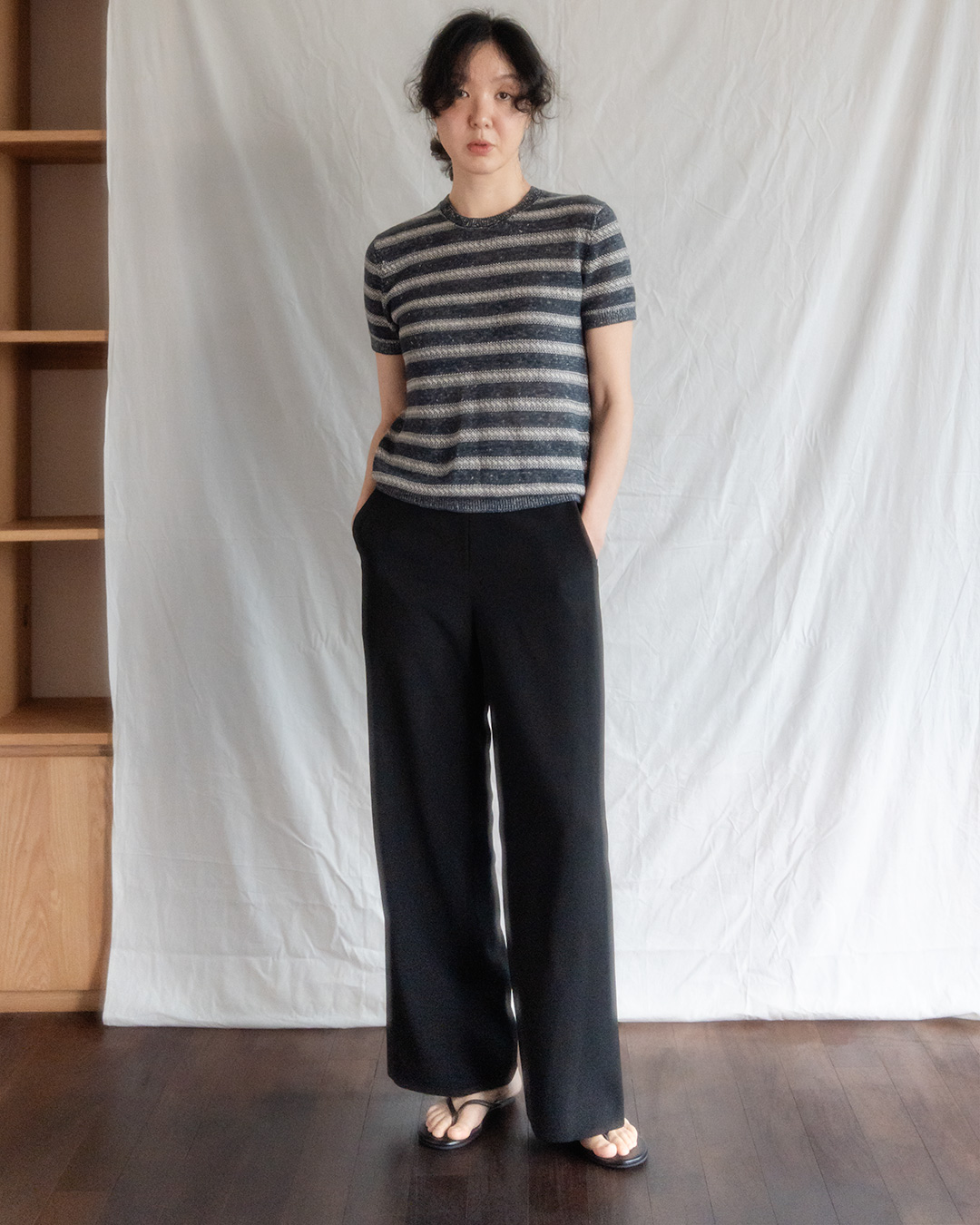 무더운 계절일수록 옷은 편해야 하지만, 그렇다고 너무 후줄근해 보이는 건 또 싫어지죠. 이 니트 톱은 그런 고민을 기분 좋게 정리해주는 아이템이에요. 티셔츠처럼 가볍게 입을 수 있는데, 린넨 니트 특유의 조직감과 스트라이프 패턴 덕분에 훨씬 더 정돈되고 세련된 인상을 만들어줍니다. 바쁜 아침에도 하나만 입으면 룩이 밋밋해 보이지 않아, 여름 옷장에서 생각보다 자주 찾게 될 타입이에요.