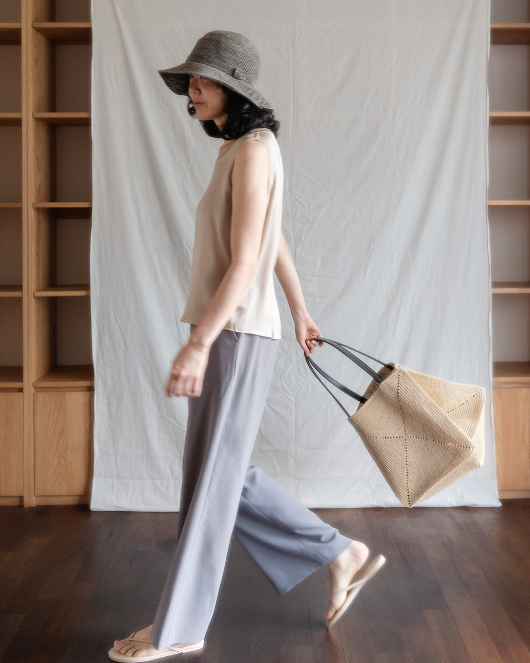 한여름용으로 지나치게 얇은 느낌이 아니라 계절을 조금 더 길게 가져가기 좋은 팬츠입니다