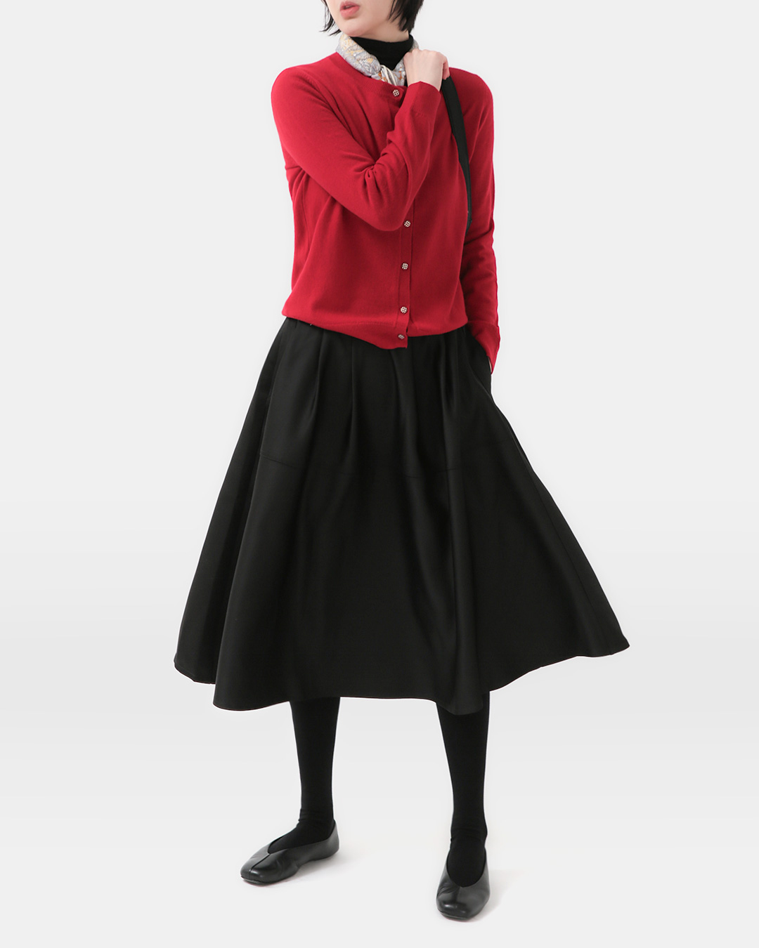 무릎 아래 떨어지는 우아한 기장감과 은은한 광택감이 느껴지는 실크라이크 소재로 미니멀하면서 여성스러운 룩을 연출하기 좋은 스커트입니다. 볼륨 스커트는 입어 보아야 날씬하게 보이는지 아닌지 알 수 있는데요, 착용했을 때 실제보다 날씬한 핏이 연출되어 마음에 쏙! 들었던 제품입니다. 허리 뒤 부분이 밴드로 되어 있어서 편안한 착용감이예요. 옷장에 두면 든든한 에센셜 아이템으로 스커트를 좋아하는 모두에게 자신 있게 추천드립니다. M(55-66), L(66-77) 사이즈로 만나보세요 😊