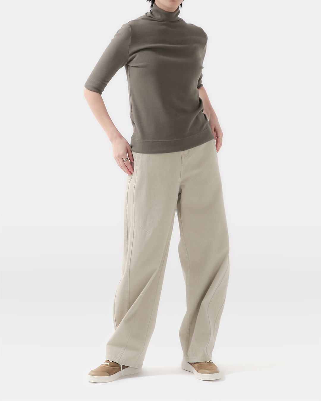 부드러운 베이지 톤으로, 어디에나 자연스럽게 어우러지는 데님 팬츠입니다. 차분하면서도 결코 밋밋하지 않은 이 색감은, 바쁜 일상 속에서도 한결 여유로운 분위기를 연출해주죠. 코튼 100% 소재라 탄탄하면서도 유연하게 떨어져, 활동하기에 편안하고 체형에 구애받지 않는 실루엣을 완성합니다. 사이드 심라인을 둥글게 처리하고 다트 디테일을 더해, 입었을 때 옆선이 깔끔하고 세련된 볼륨감이 살아나요. 특히 살짝 여유 있게 반 사이즈 업해 입으면 허리와 힙을 편안히 감싸면서도, 전체적으로 슬림해 보이는 마법 같은 핏이 완성됩니다. 여유로운 주말에도, 격식을 살짝 갖춰야 하는 자리에도 이 팬츠 하나면 고민 없이 스타일을 완성할 수 있어요. 단순하고 충만한 일상을 위해 필요한 것은 결국, ‘내 일상에 함께할’ 믿음직한 데님 한 벌 아닐까요? 바로 그 조건을 충족하는 타임리스 아이템입니다 😊