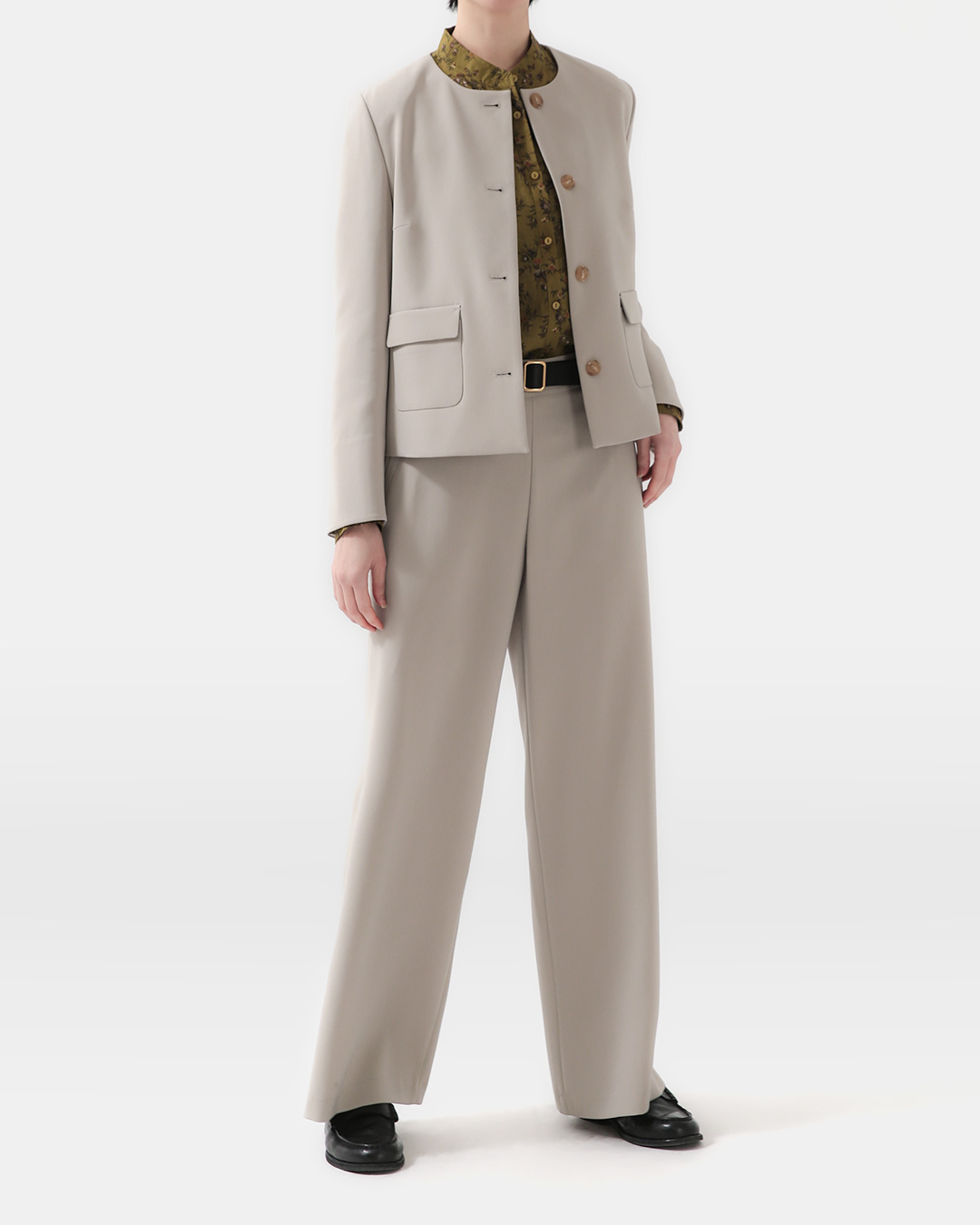 세트로 출시된 재킷과 함께 매치하면 모던한 수트 룩을, 셔트나 니트와 함께 코디하면 편안하면서도 격식 있는 스타일로 즐길 수 있습니다. 베이지와 블랙 두 가지 컬러로 만나보세요. 55, 66, 77 사이즈로 준비했어요. 단정하면서도 감각적인 룩을 원하신다면, 이 세트가 정답입니다 😘