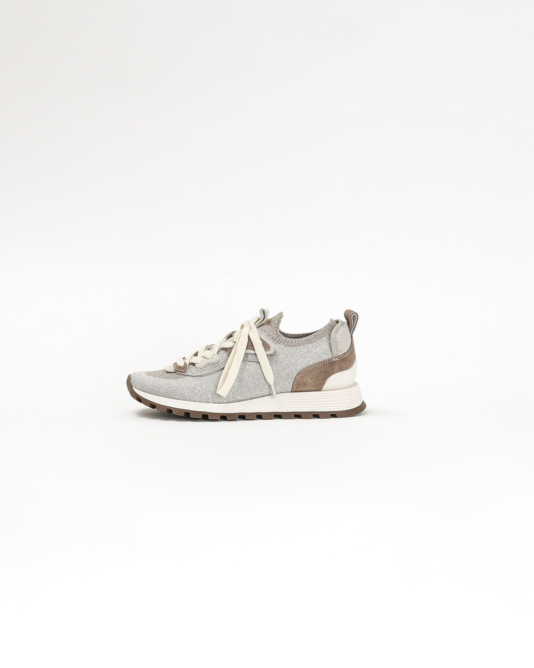운동화일 뿐이라 생각했다면 오산! 니트와 가죽, 그리고 메탈 장식이 절묘하게 블록되어, 구두 못지않은 격조와 세련미를 갖춘 스니커즈입니다. 발을 안정감 있게 감싸주는 니트 소재가 부드럽고 탄탄하게 잡아주어, 오래 걸어도 편안한 착화감을 선사하죠. 발뒤꿈치에 살짝 더해진 굽 덕분에 다리가 한층 길어 보이고, 은은하게 빛나는 메탈 디테일은 바쁜 일상 속에서도 우아함을 잃지 않게 해줍니다. 품격 있는 룩을 완성해줄 데일리 슈즈를 찾는다면, 이 스니커즈가 바로 정답이 되어줄 거예요 😊