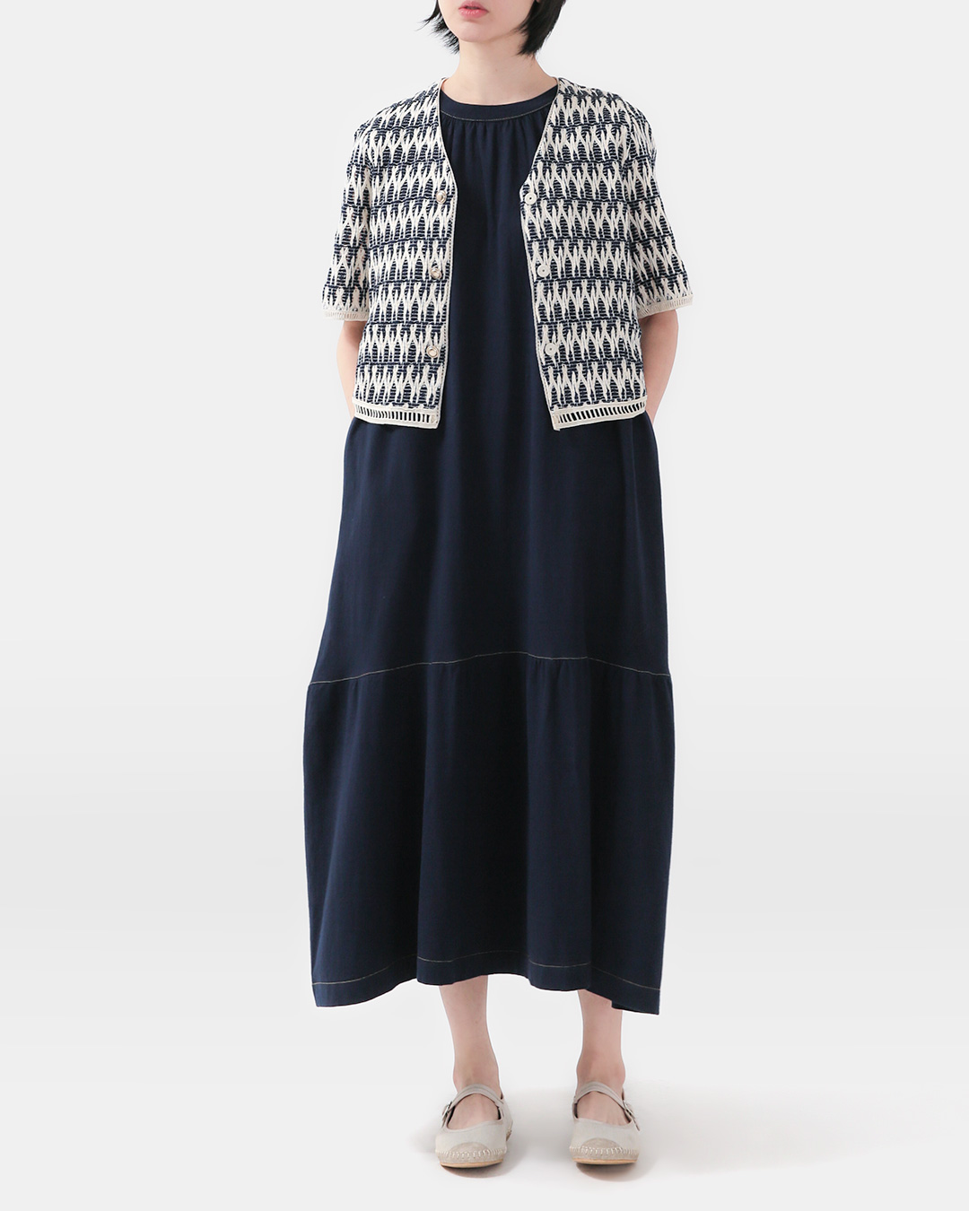 한눈에 시선을 사로잡는 아이템, 이번 시즌 가장 로맨틱한 무드를 담은 니트 가디건입니다. 정교한 자카드 패턴과 섬세한 크로셰 칼라 디테일이 어우러져 클래식하면서도 빈티지한 매력을 더해주고, 반팔 소매로 여름까지 가볍게 걸치기 좋아요. 컬러감이 잔잔하게 믹스된 입체적인 니트 조직이 고급스러움을 더하며, 버튼을 모두 잠궈 단품 니트처럼 활용하거나 오픈해서 아우터처럼 스타일링해도 멋스럽습니다. 흔치 않은 패턴과 디자인으로 하나만 입어도 충분히 포인트가 되며, 단색 원피스나 스커트와 레이어링하면 한층 세련된 룩을 완성할 수 있어요. 로맨틱하면서도 시크한 무드를 동시에 느낄 수 있는 아이템으로, 계절 구애 없이 오래도록 즐기실 수 있을 거예요 😎