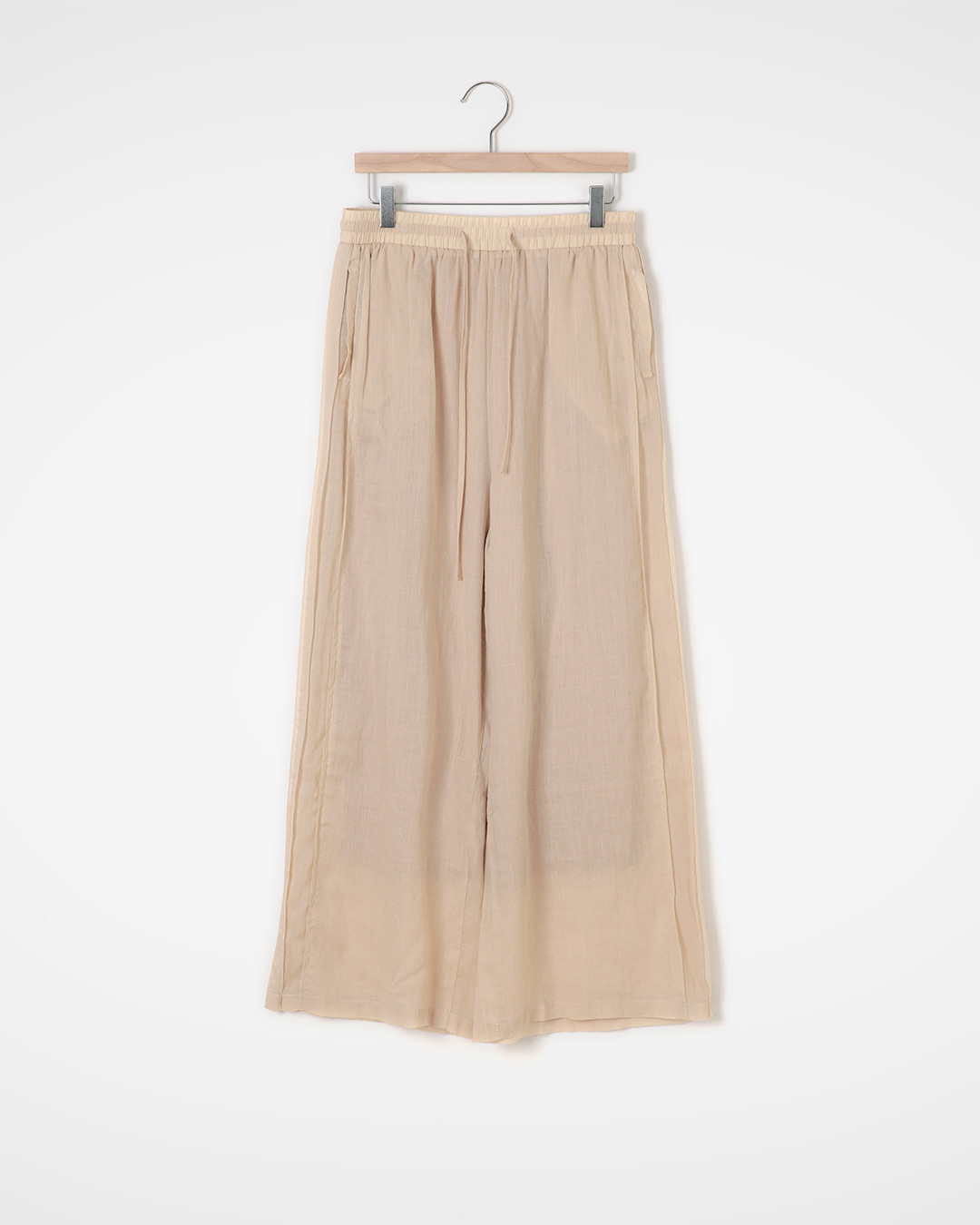 • 린넨 100%의 통기성 좋은 원단, 가볍고 바람이 잘 통해요 • 전체 허리 밴딩과 조절 가능한 스트링으로 활동성 UP • 이너 팬츠가 내장되어 있어 비침 걱정 없이 착용 가능 • 무릎 아래로 자연스럽게 퍼지는 와이드 핏 • 베이직한 베이지 톤으로 어떤 상의와도 조화롭게 매치 얇고 시원하지만, 비치지 않고 심플하지만, 디테일은 세심하게. 매일이 더 편안해질 수 있는 여름 팬츠입니다 😗